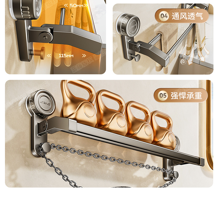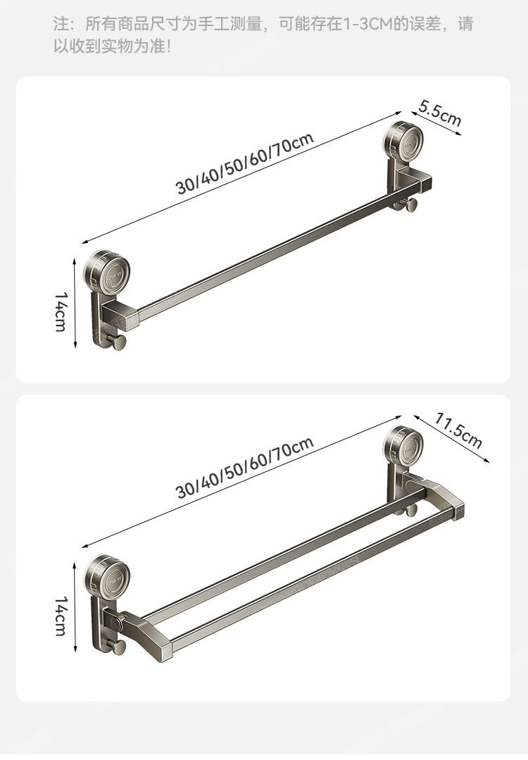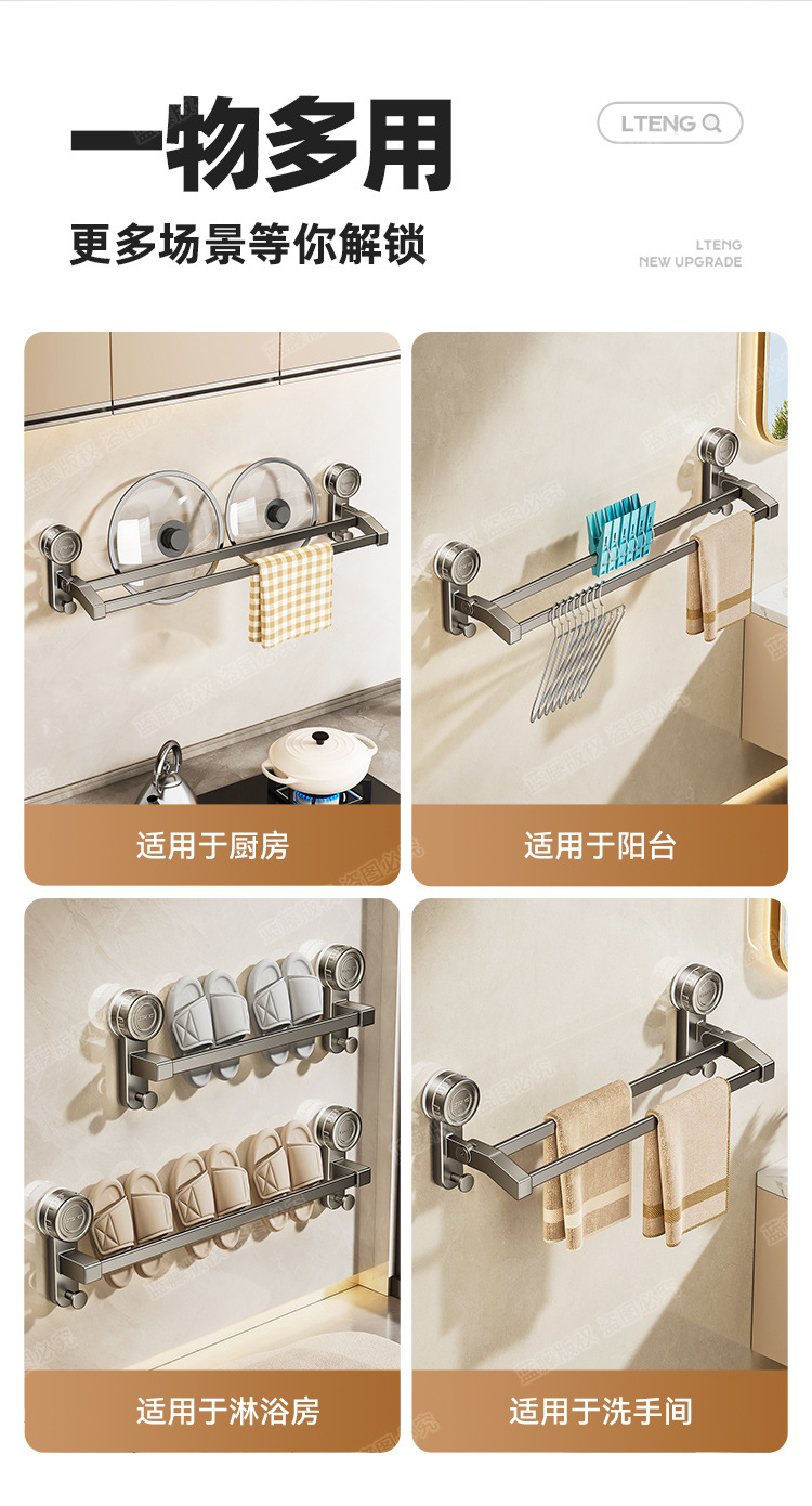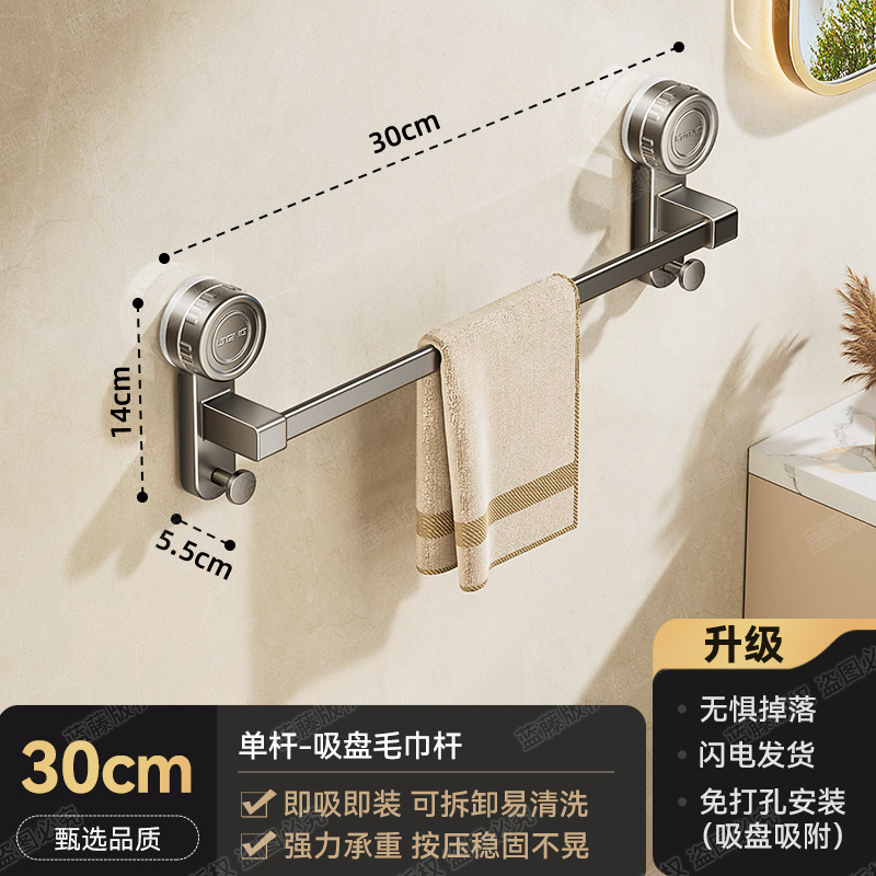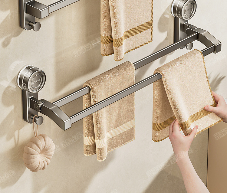 로타리 흡입 컵 타월 바 더블 막대 비 천공 화장실 수건 바 싱글로드 후크 스토리지 랙