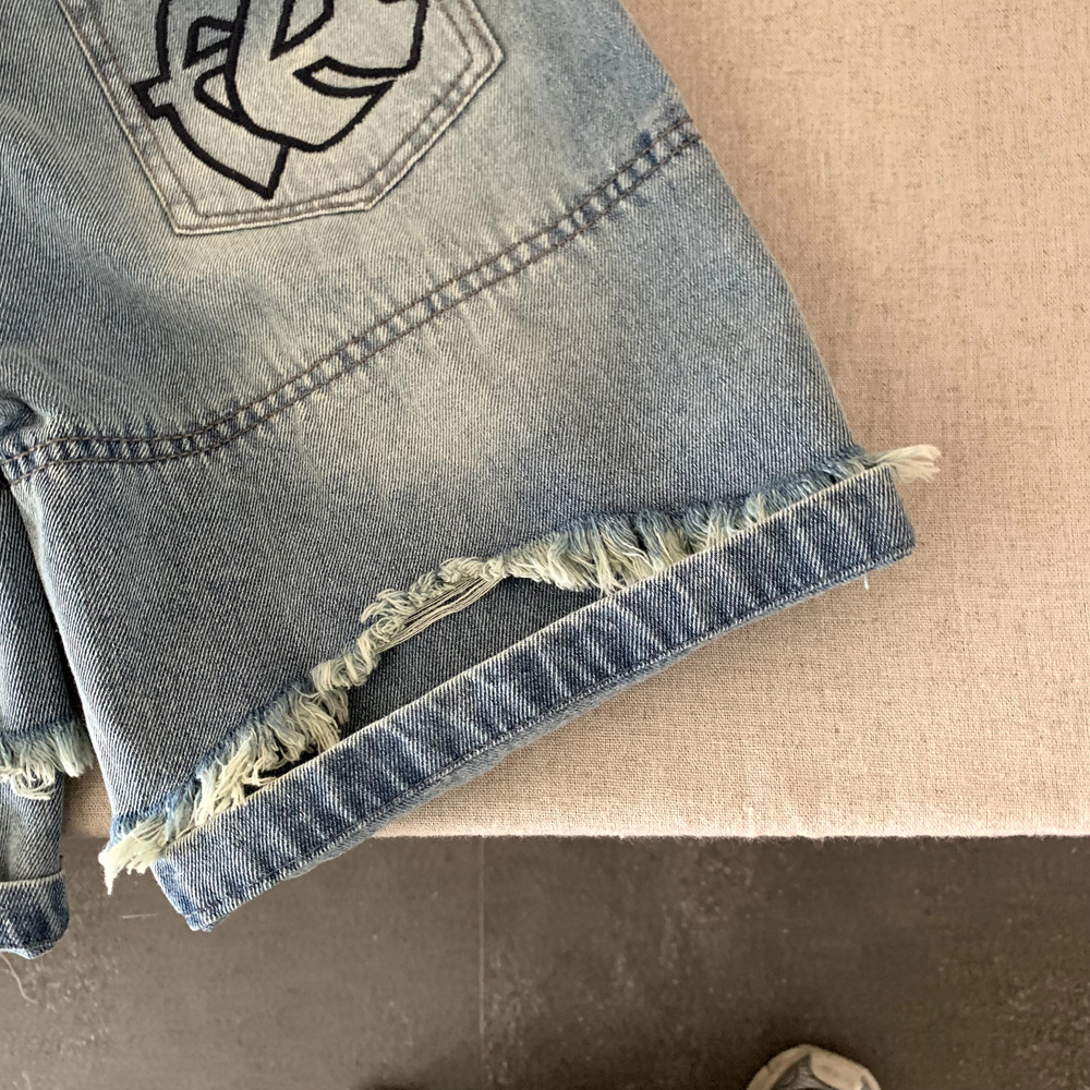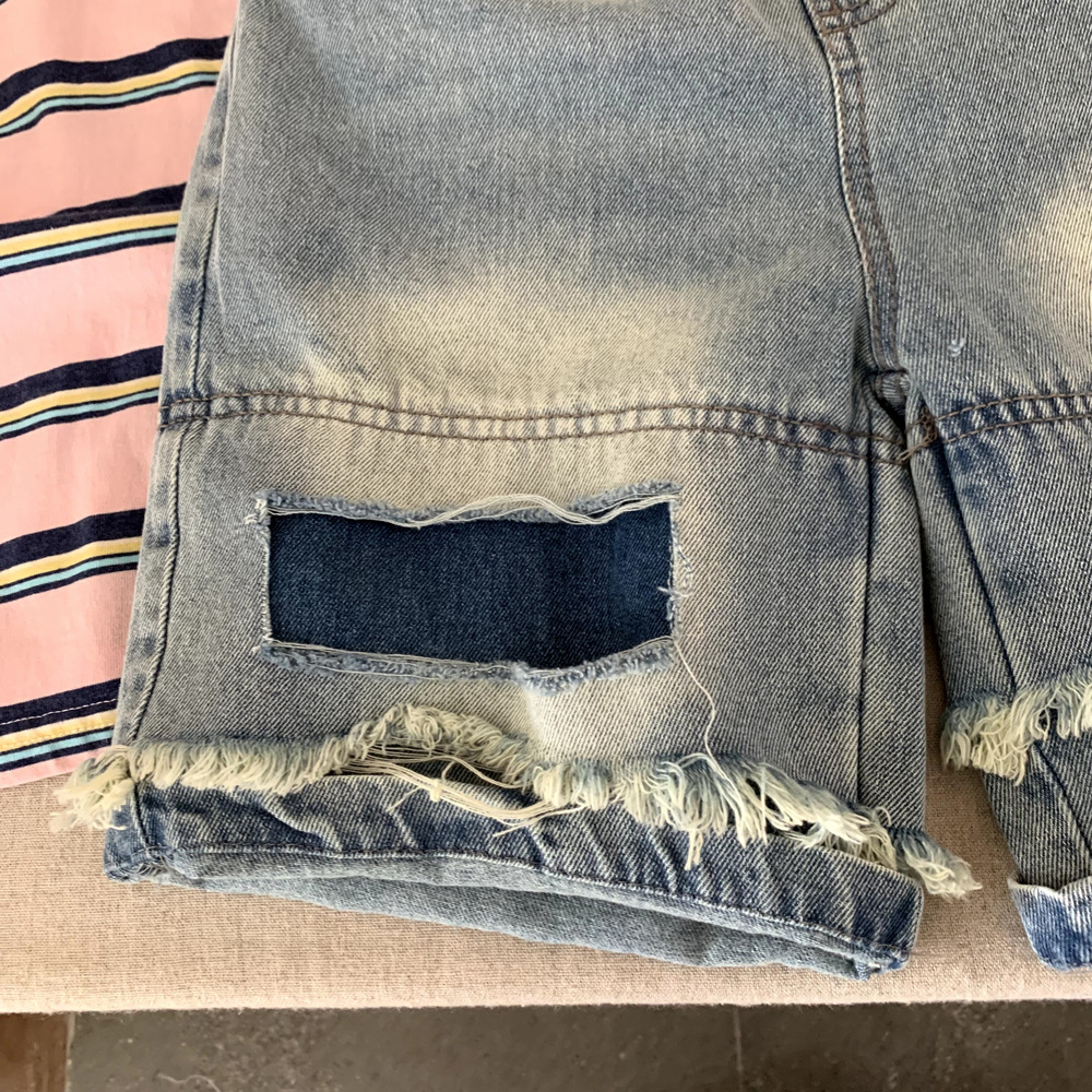 소년 데님 반바지 여름 2025 새로운 어린이 여름 잘 생긴 찢어진 바지 아기 얇은 느슨한 겉옷스토어 가기