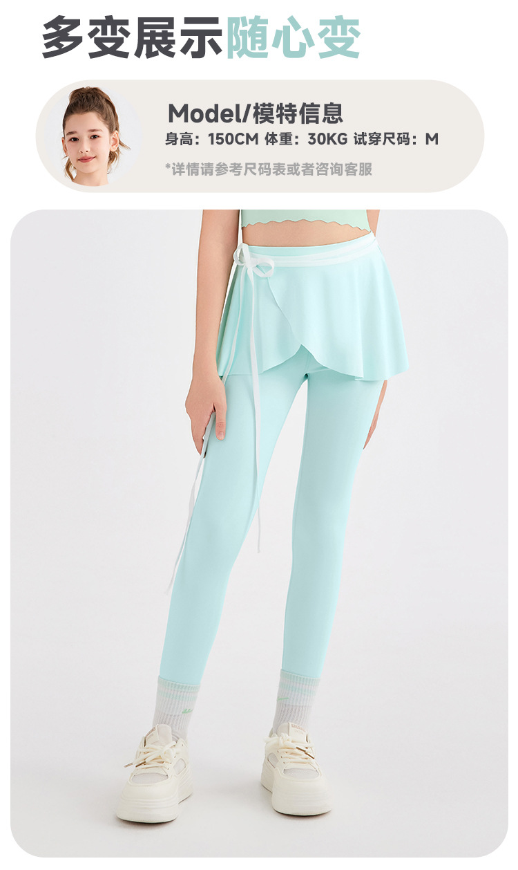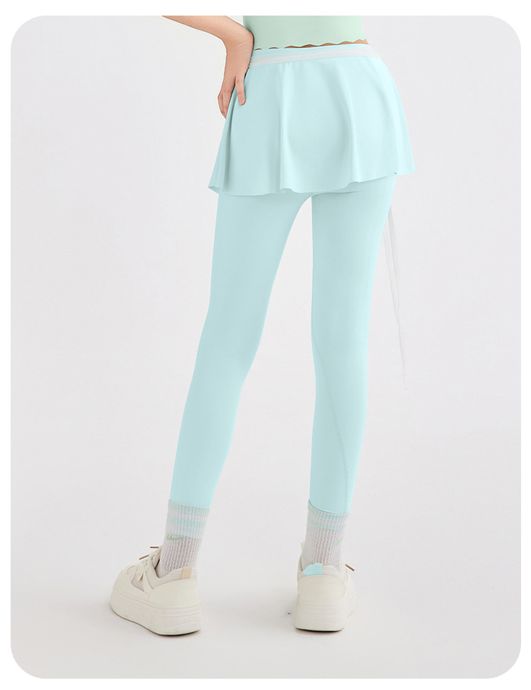 맞춤형 항균 가랑이 여아 요가 팬츠, 고탄성 학생 스포츠 스타킹, 탈착식 리얼 투피스 아동 스커트