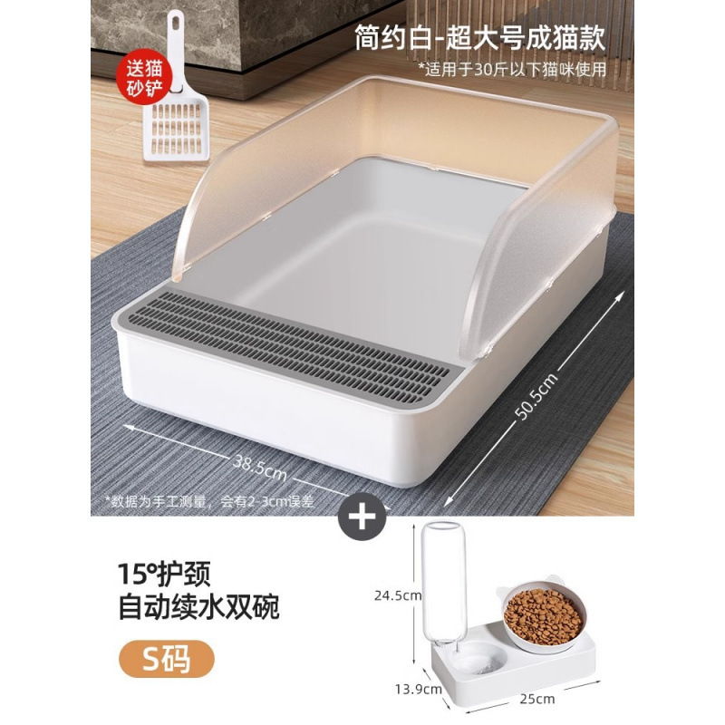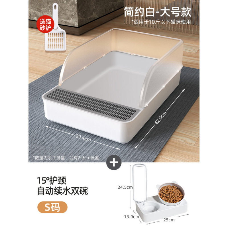 • [심플 화이트] - 대형 모델 + 목 보호 이중 그릇 + 고양이 놀리는 막대 (수집용 고양이 삽 무료)