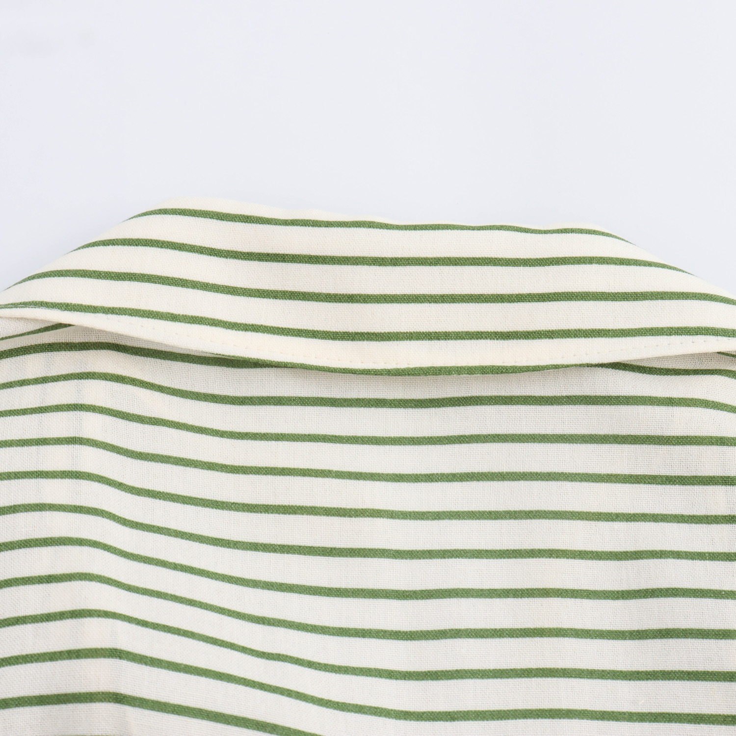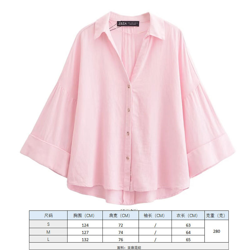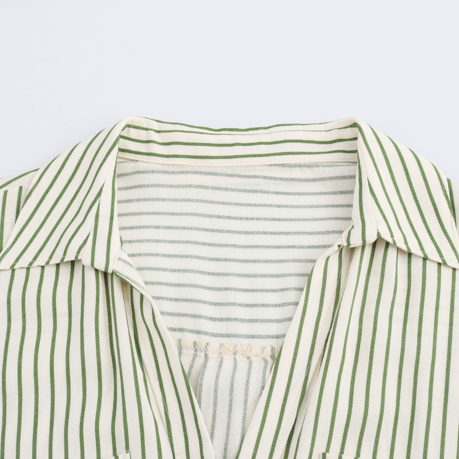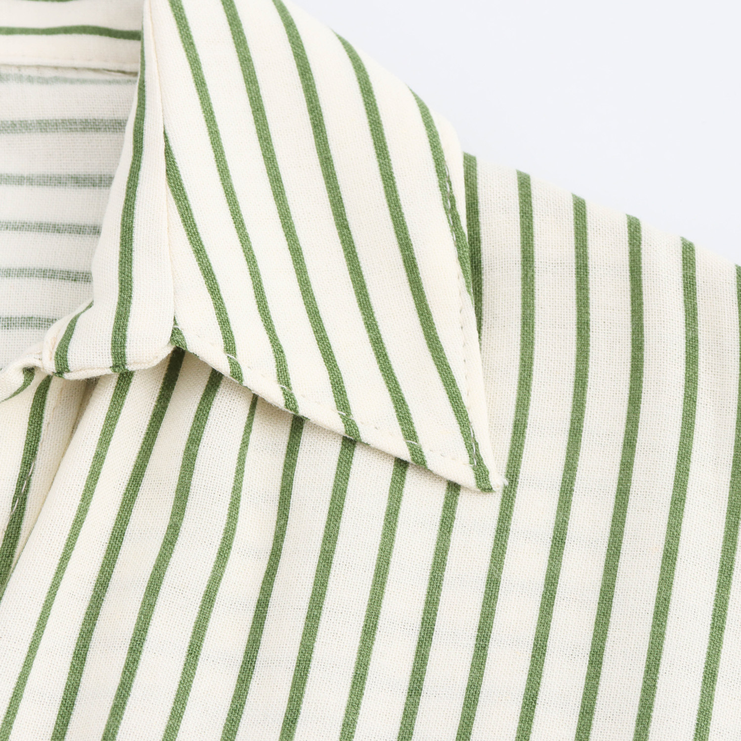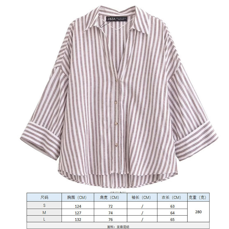 국경 간 2025 봄 여름 새로운 여성 의류 유럽과 미국 스타일의 패션 캐주얼 다목적 옷깃 스트라이프 와이드 슬리브 셔츠 여성 면화와 린넨