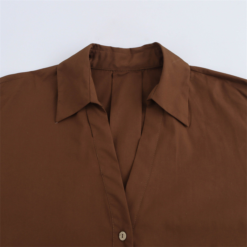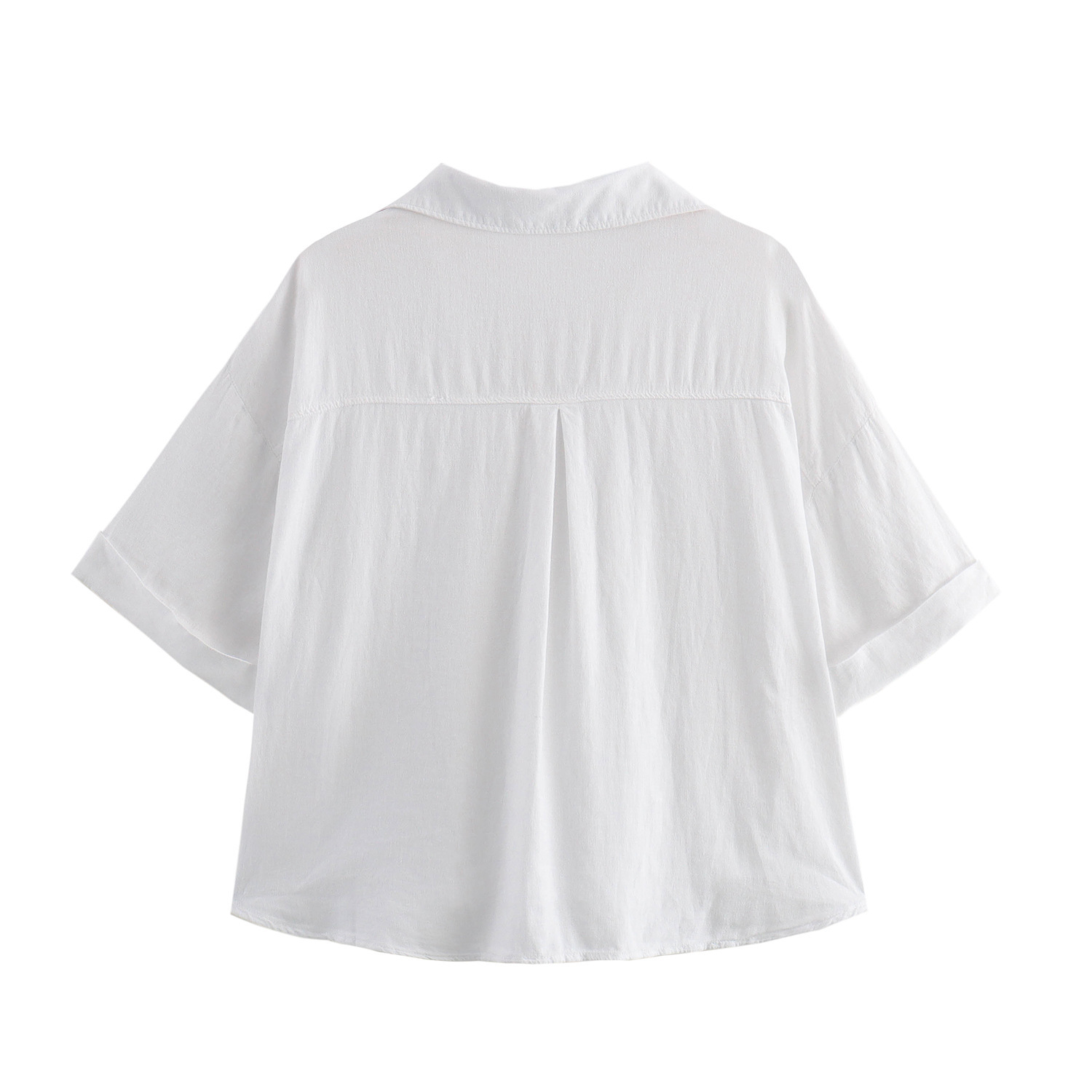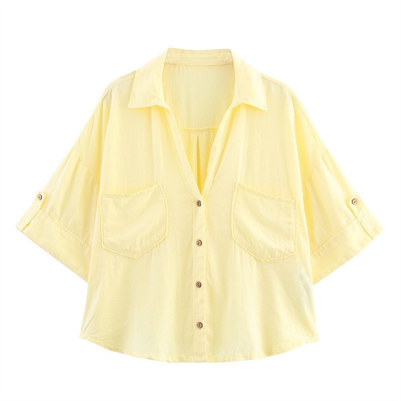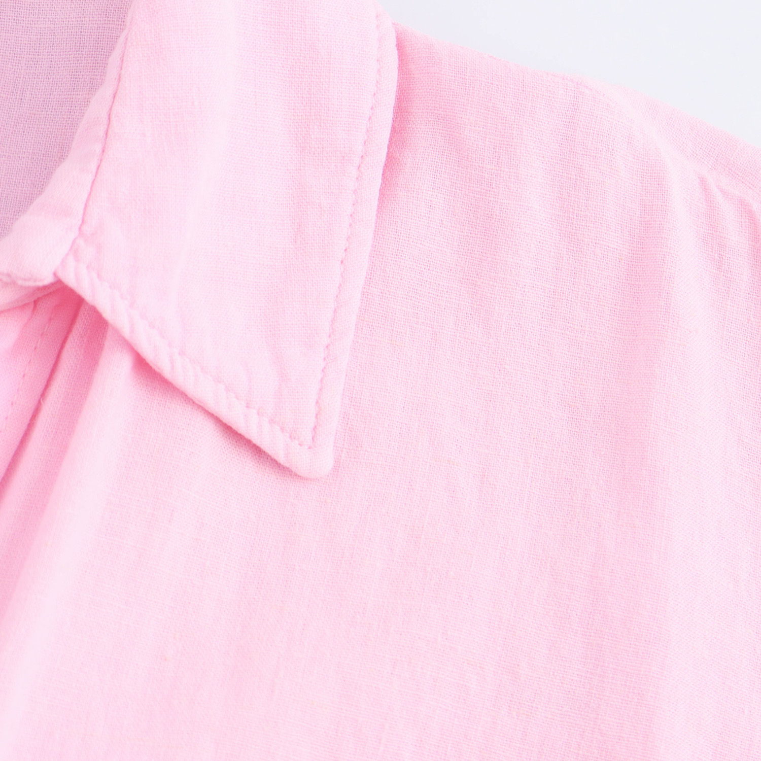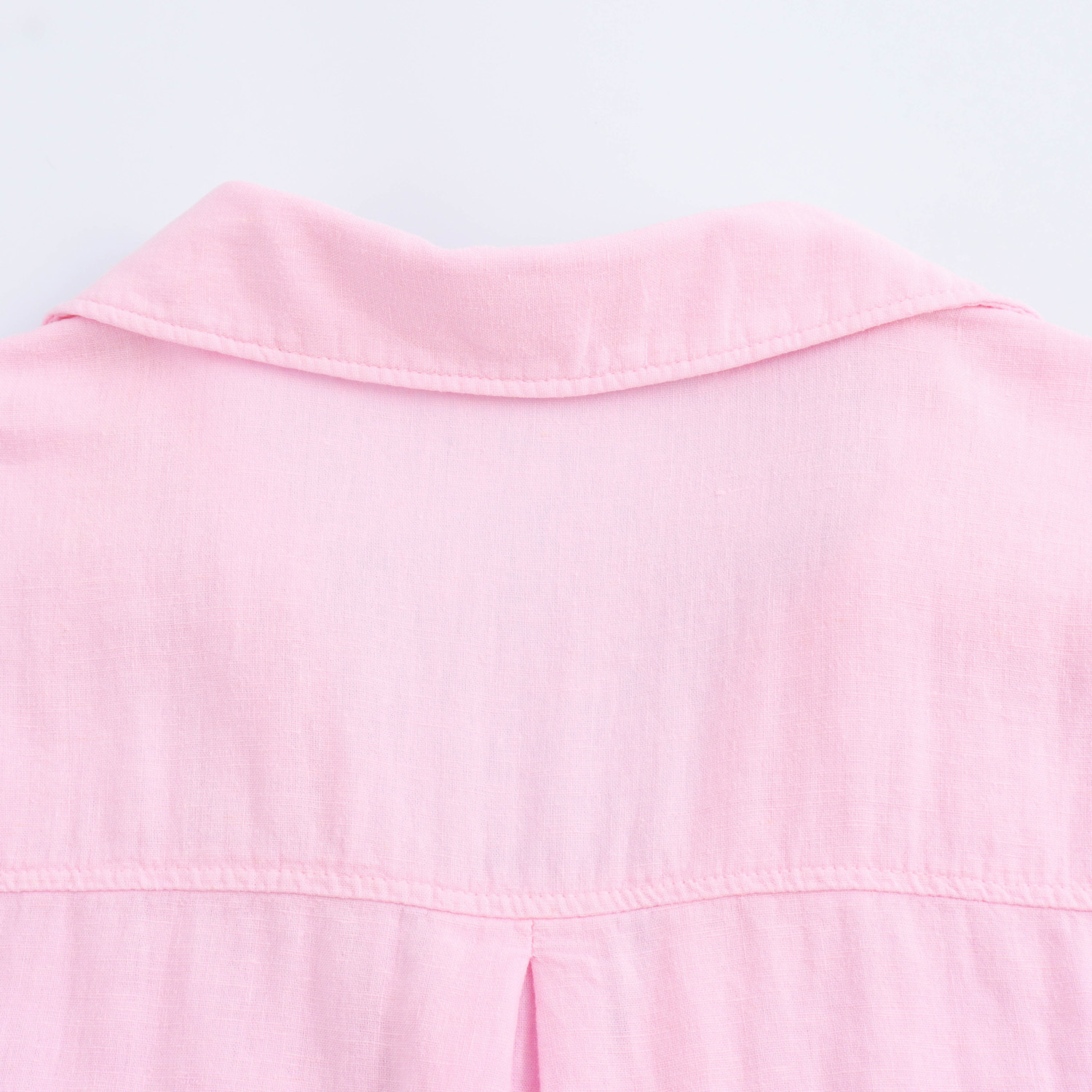 국경 간 2025 봄 여름 새로운 여성 의류 유럽과 미국 스타일의 패션 캐주얼 다목적 옷깃 스트라이프 와이드 슬리브 셔츠 여성 면화와 린넨
