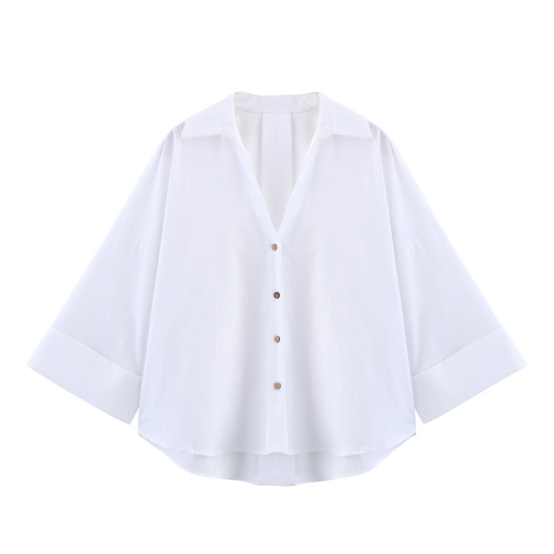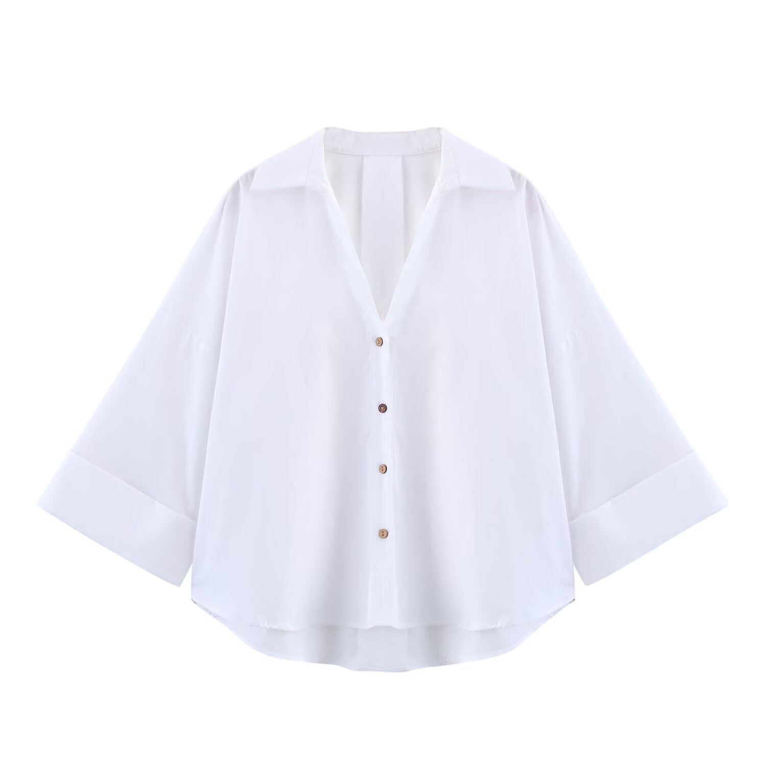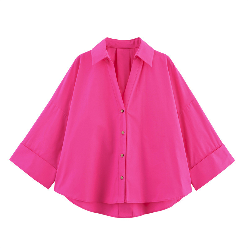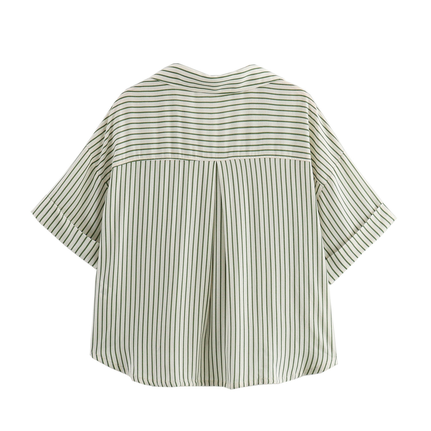국경 간 2025 봄 여름 새로운 여성 의류 유럽과 미국 스타일의 패션 캐주얼 다목적 옷깃 스트라이프 와이드 슬리브 셔츠 여성 면화와 린넨스토어 가기