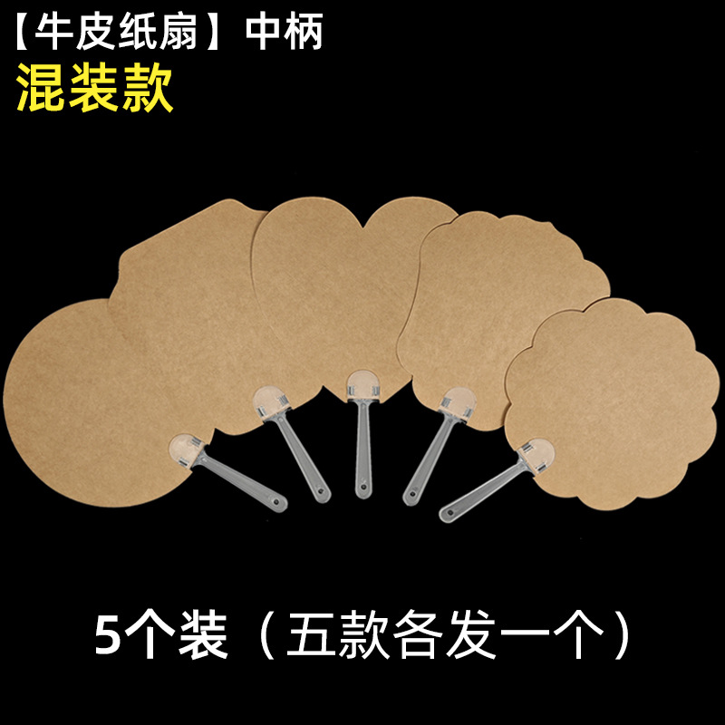 • 크래프트 종이 부채 [혼합] 중간 손잡이 5개