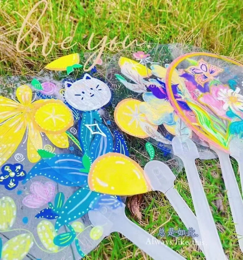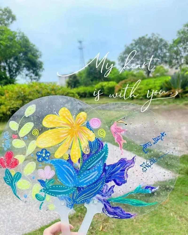 골동품 팬 어린이 수제 예술 손으로 그린 그림 팬 낙서 빈 구아 카 손 계정 스티커 팬 도매