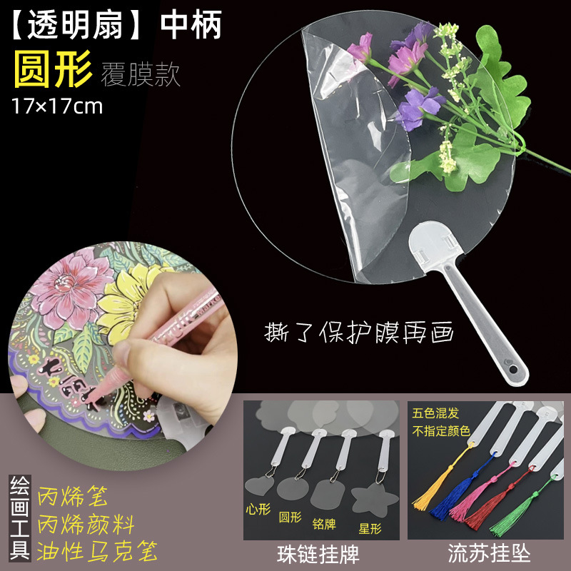• 투명부채[원형 17cm]두꺼운 손잡이 50개