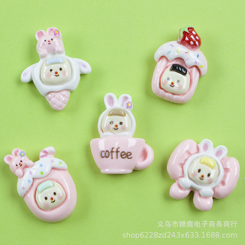 핑크 아이스크림 멀티 소녀 수지 액세서리 광택 크림 접착제 휴대 전화 케이스 냉장고 자석 키 체인 재료 도매