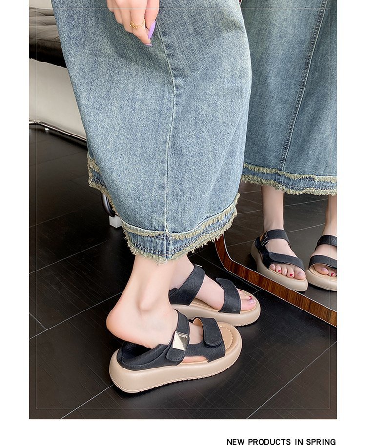 두꺼운 밑창 벨크로 로마 스포츠 샌들 여자 2025 년 여름 새로운 복장 올 매치 피곤하지 않은 비치 샌들스토어 가기