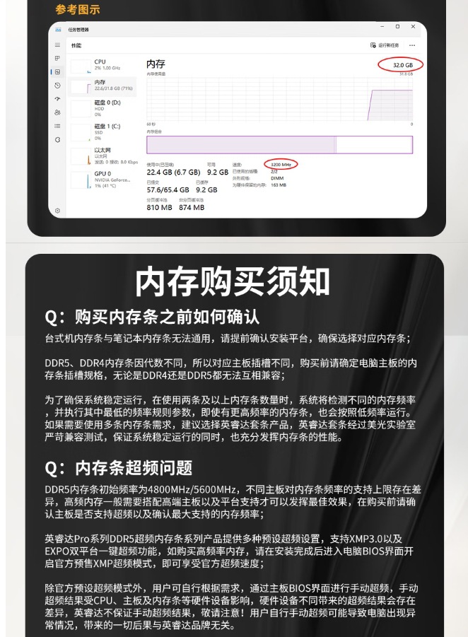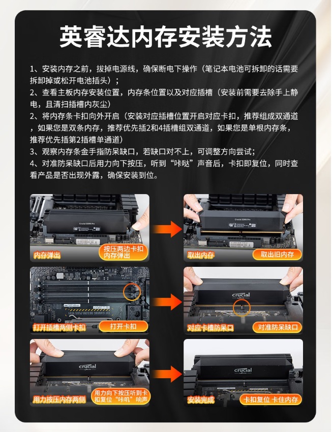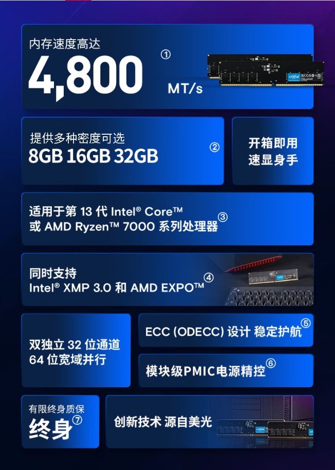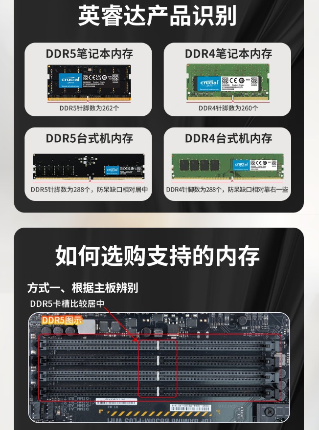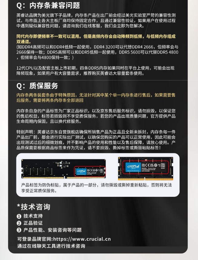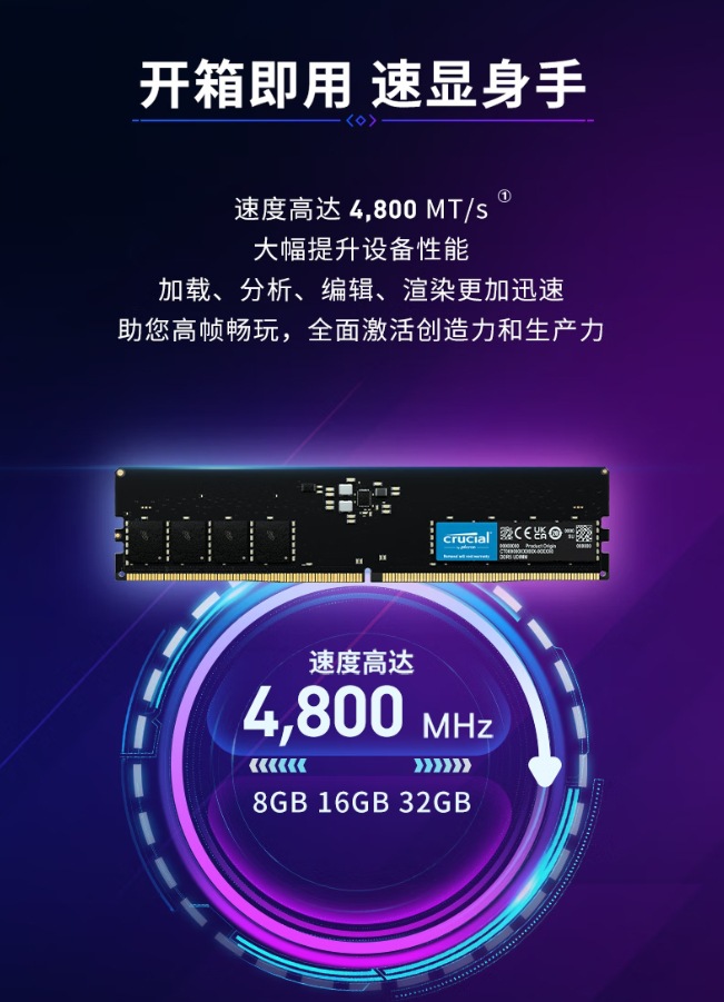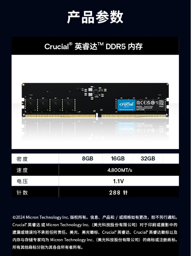 Crucial Yingruida 32G×2 세트 DDR5 4800 주파수 64GB 데스크탑 메모리 모듈 16G 세트스토어 가기