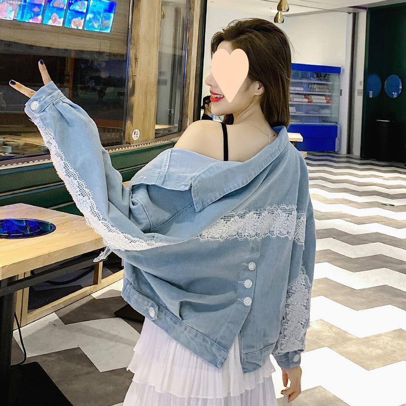 매우 요정 데님 재킷 여성의 짧은 느슨한 봄과 가을 새로운 신선한 패션 레이스 바느질 재킷 트렌디스토어 가기