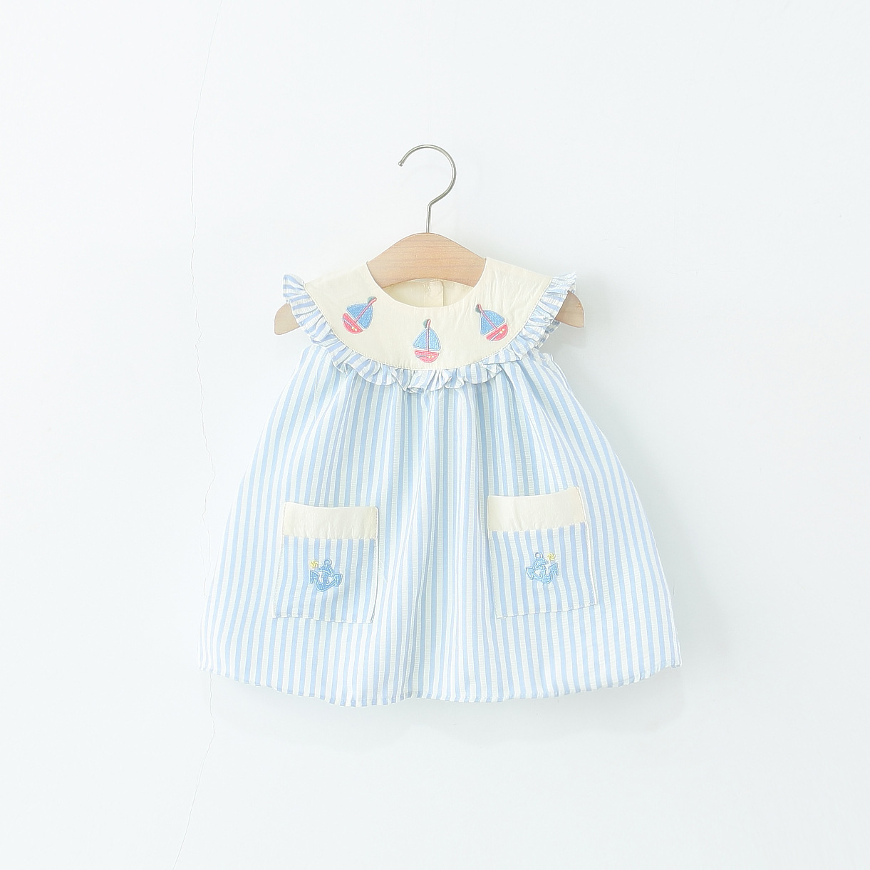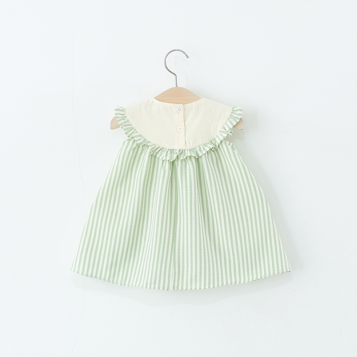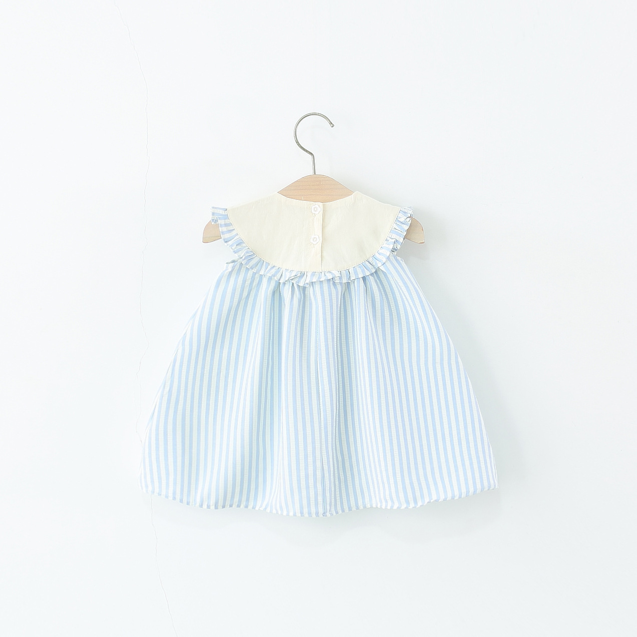어린이 착용 2025 새로운 여자 민소매 원피스 여름 아기 소녀 아기 줄무늬 턱받이 목걸이 공주 치마스토어 가기