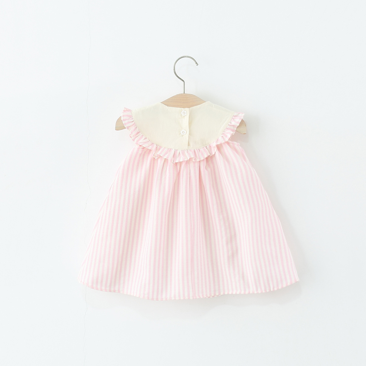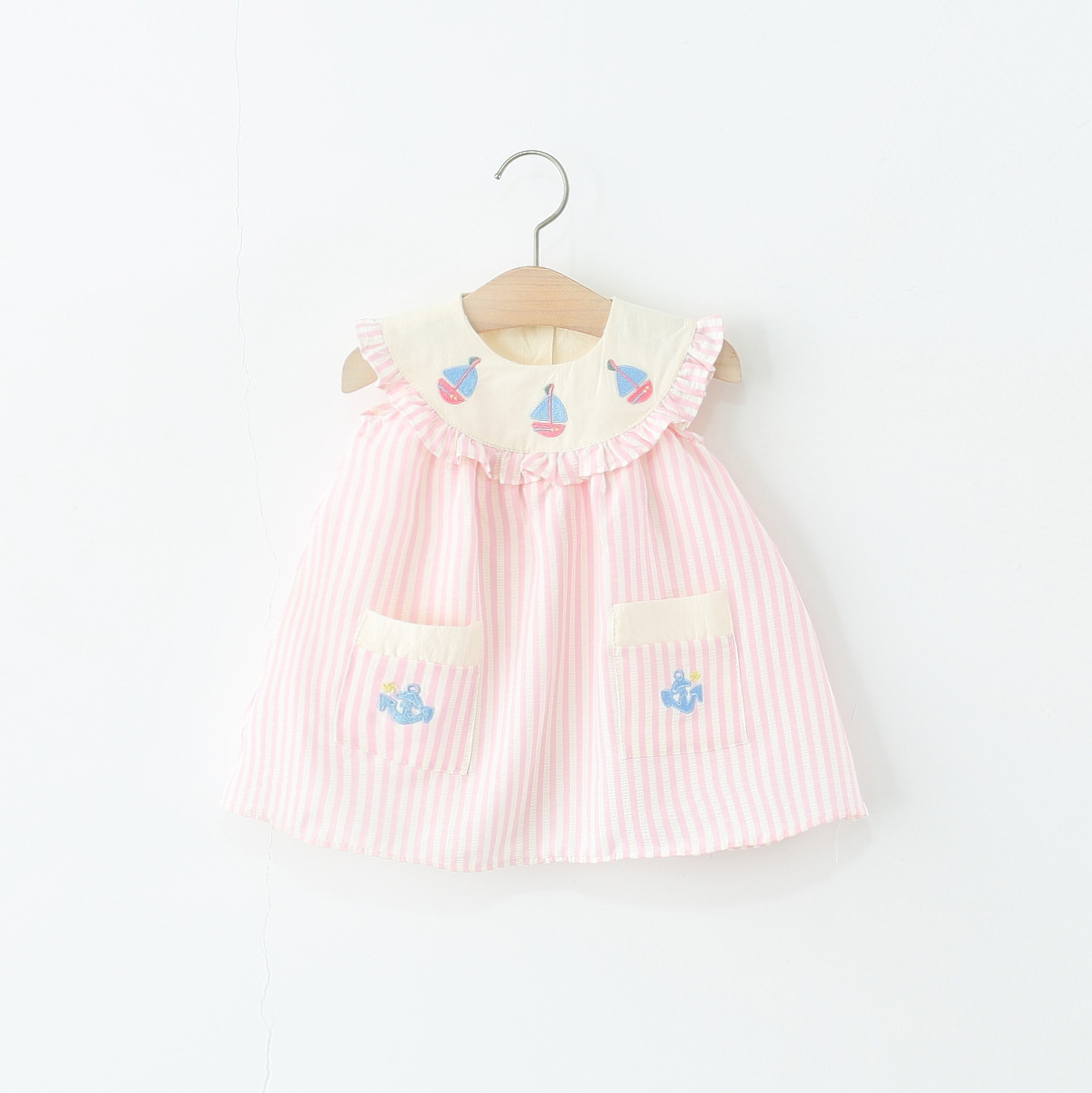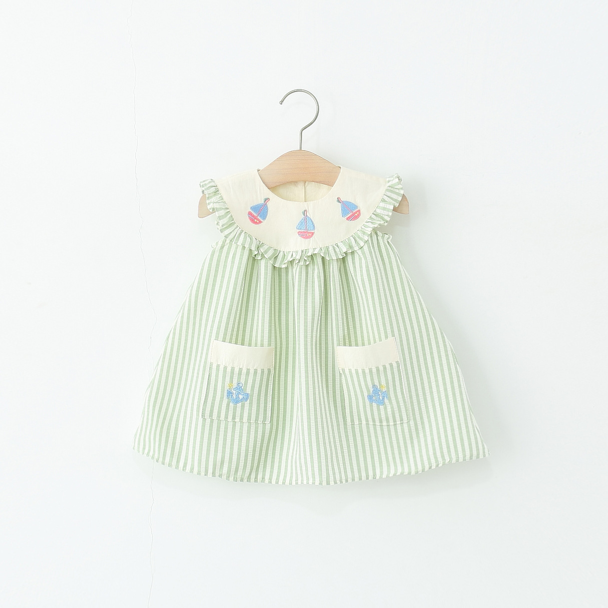 어린이 착용 2025 새로운 여자 민소매 원피스 여름 아기 소녀 아기 줄무늬 턱받이 목걸이 공주 치마스토어 가기