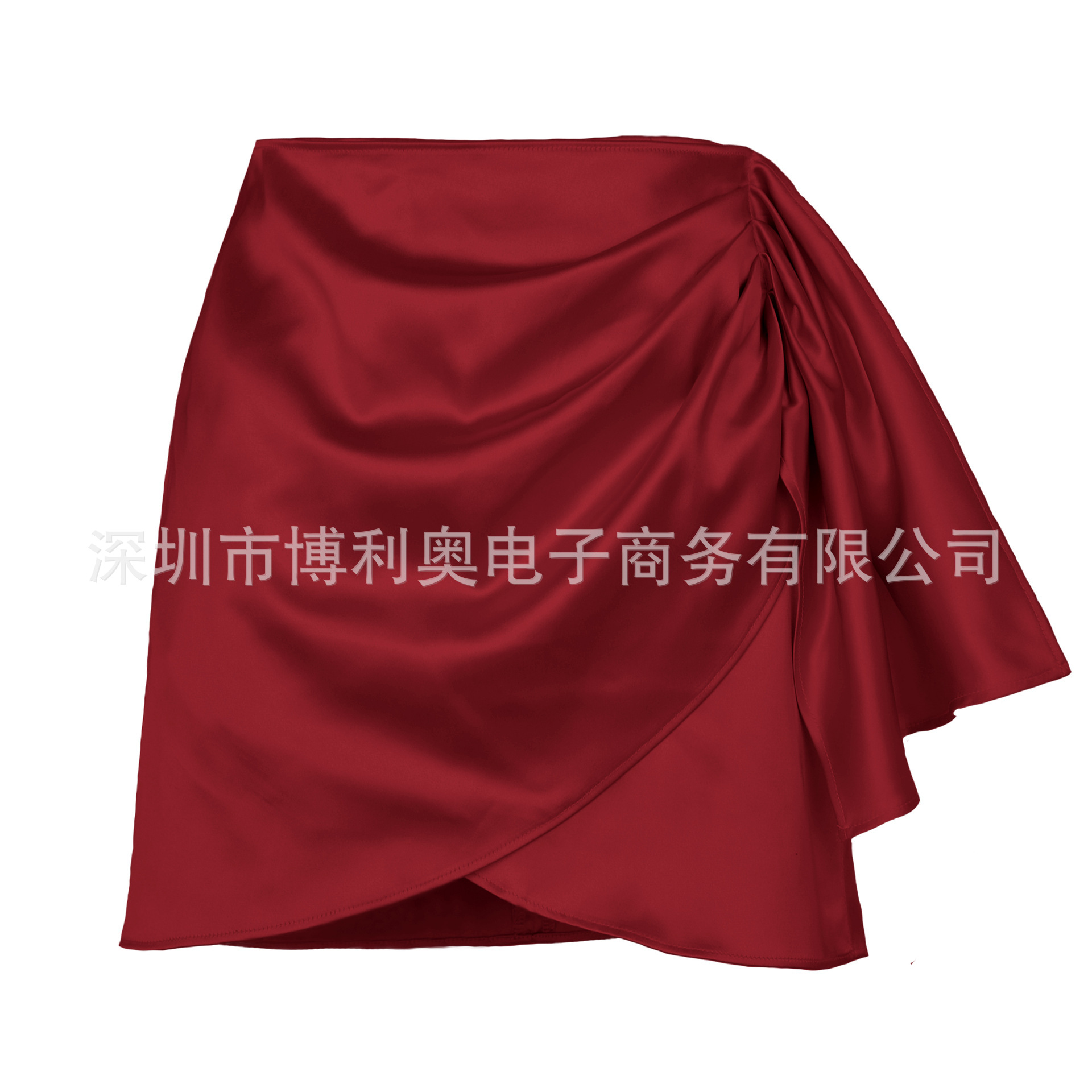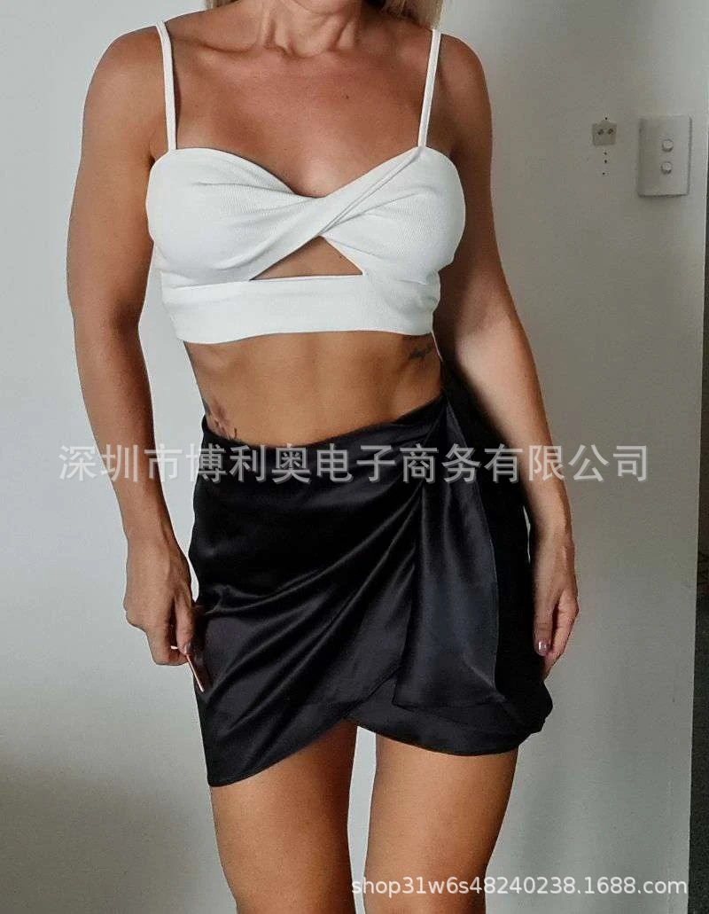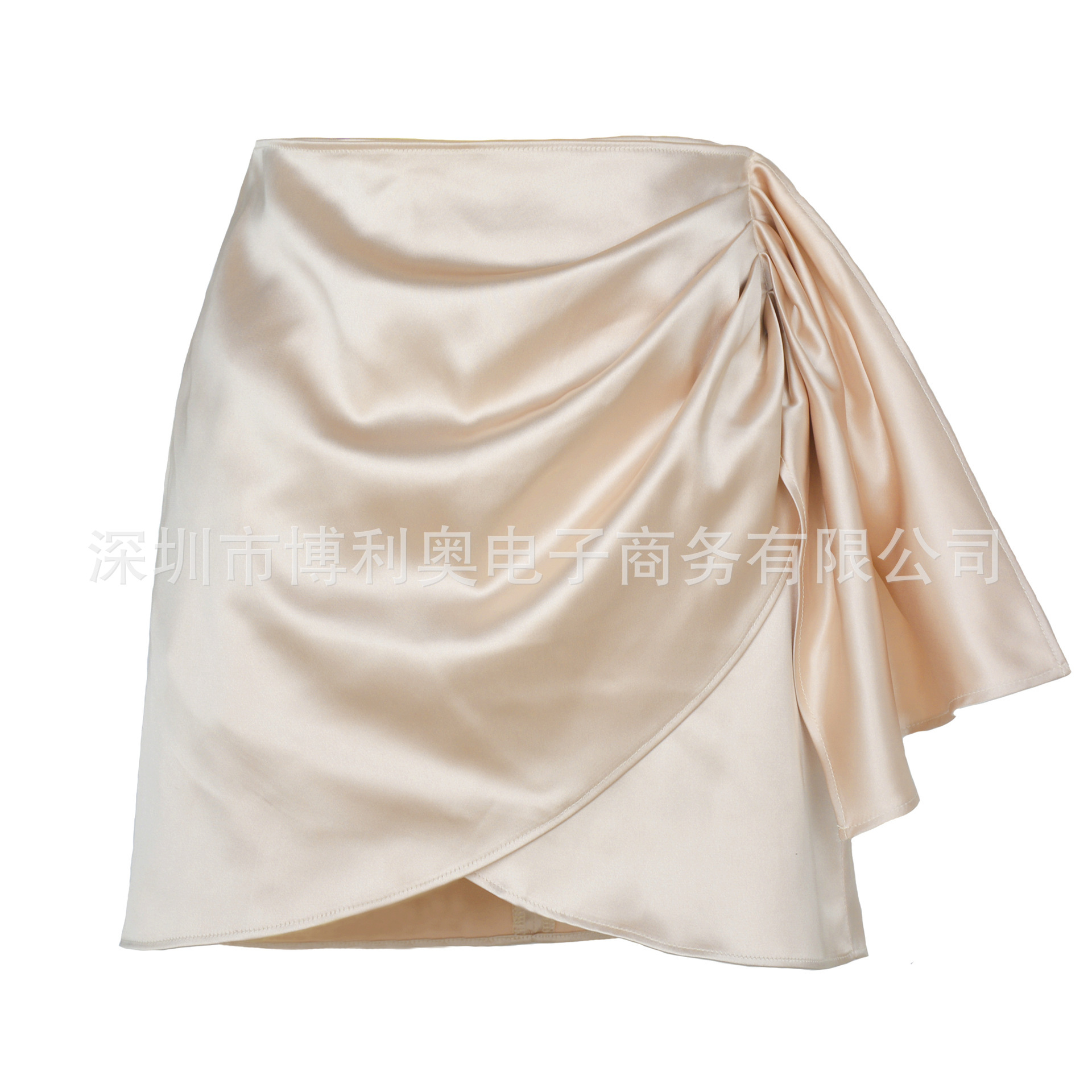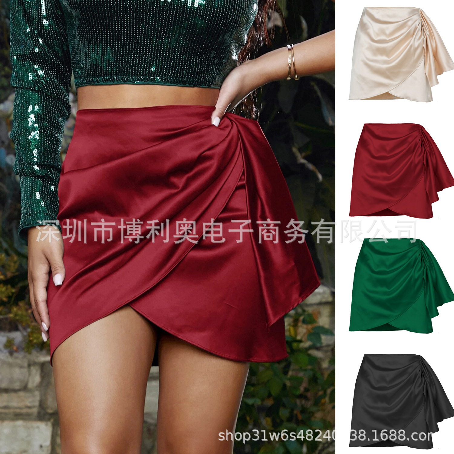 크로스 레벨 디자인 센스 여름 연회 새틴 미니 솔리드 컬러 유럽과 미국 패션 여성 스커트 섹시한 스커트