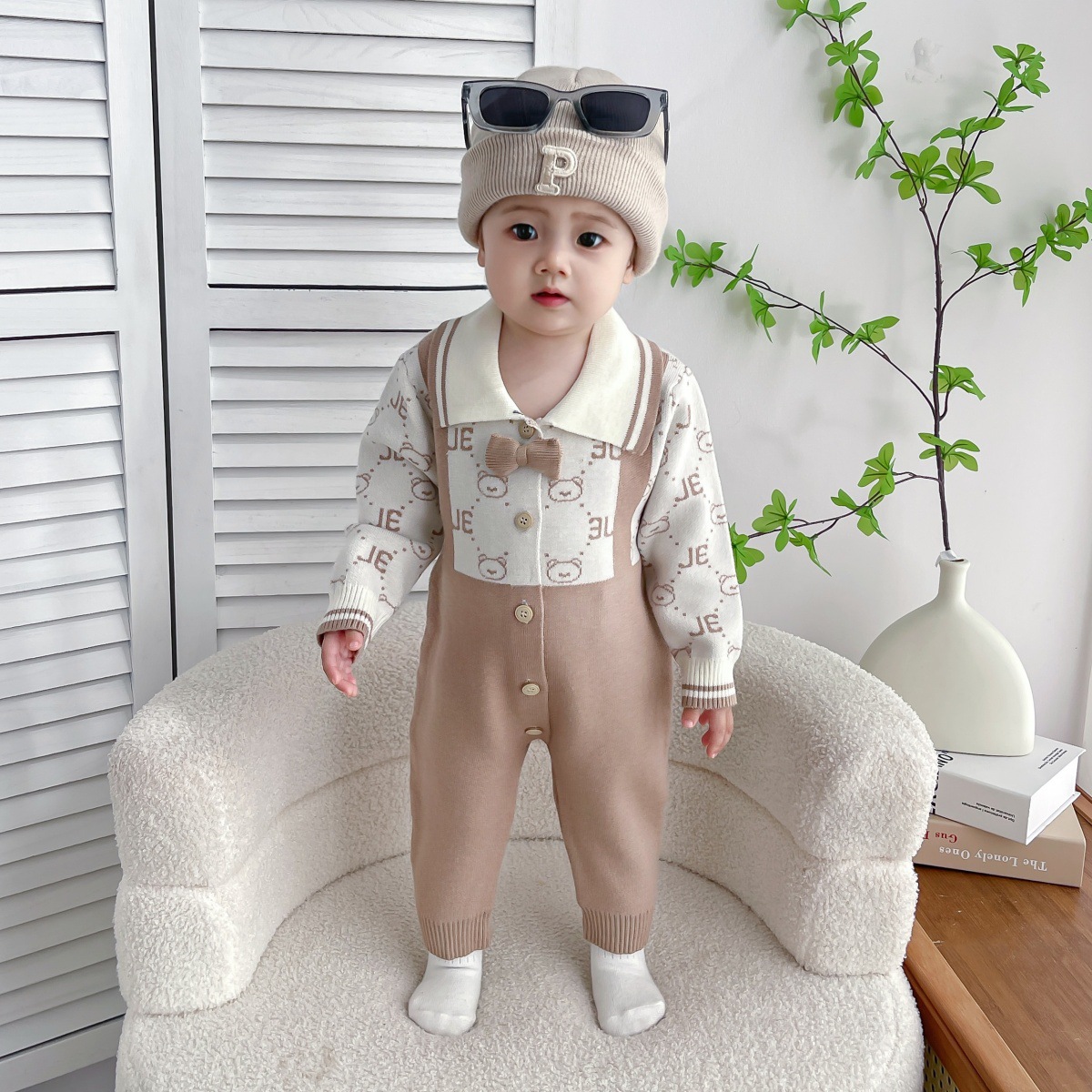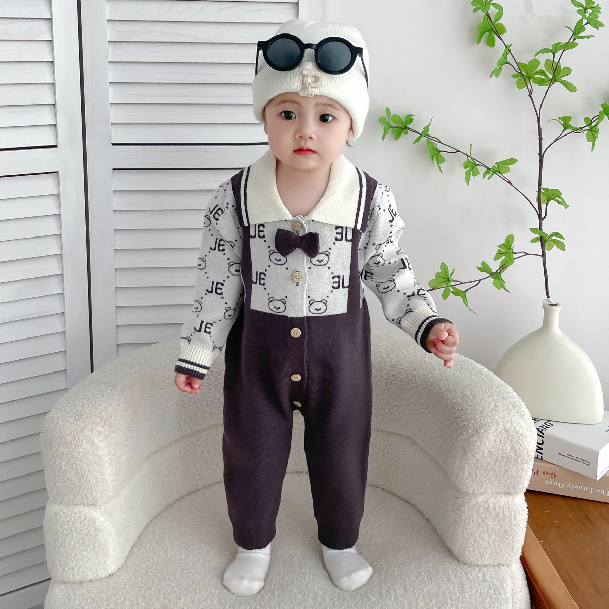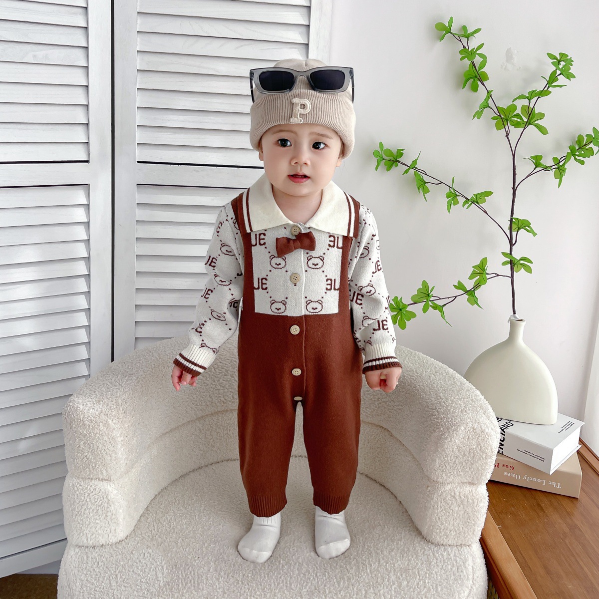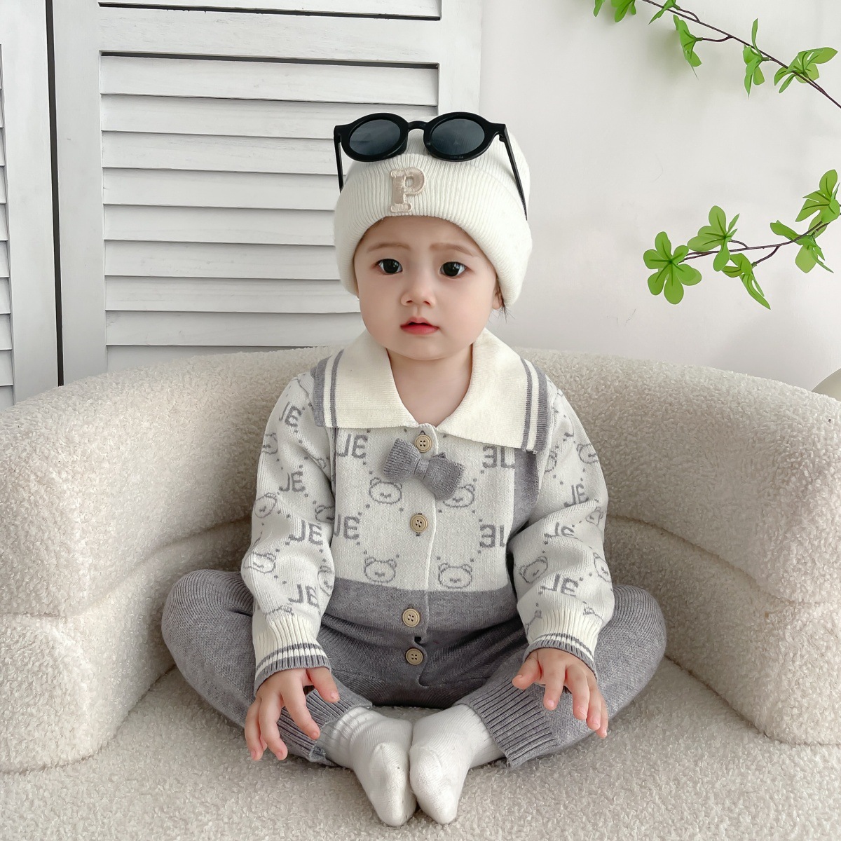 국경을 넘나드는 새로운 가을 겨울 아동복, 유아용 라펠, 대비색 긴팔 가디건, 서스펜더 바지, 점프수트, 영국식 하렘스토어 가기