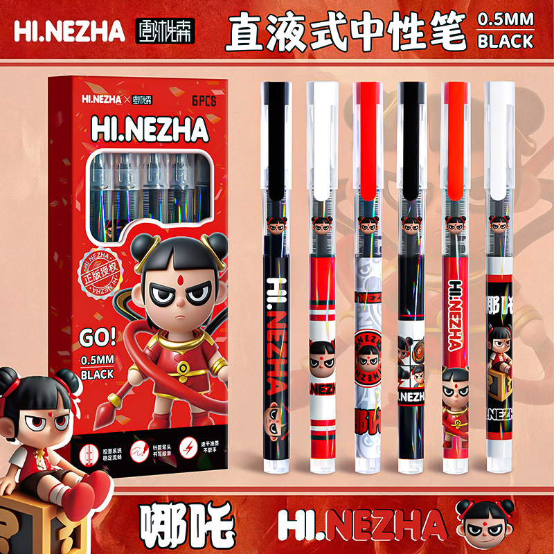 Nezha 스트레이트 액체 젤 펜 만화 고급스러운 학생 특수 브러시 펜 서명 펜 0.5 검정색 펜 박스형 펜스토어 가기