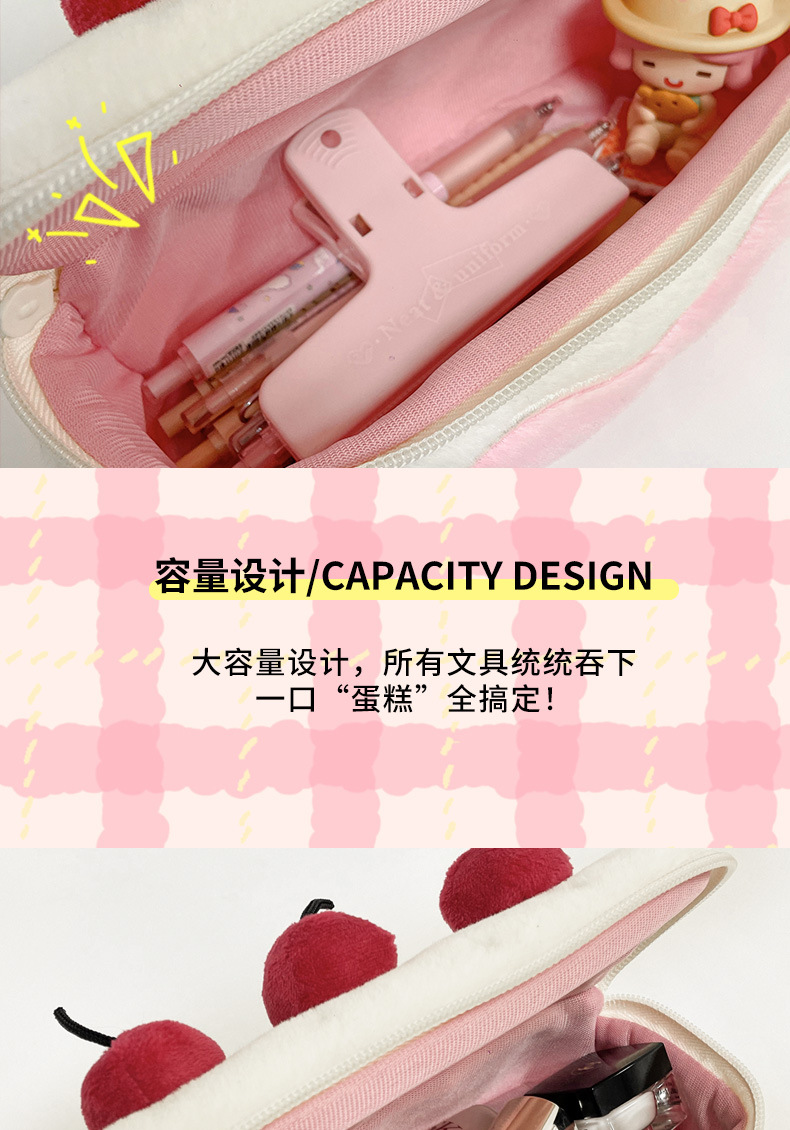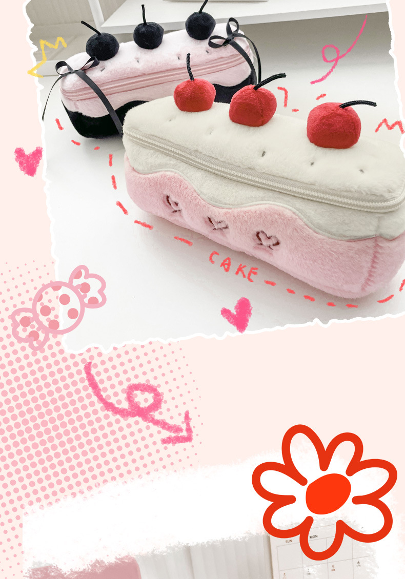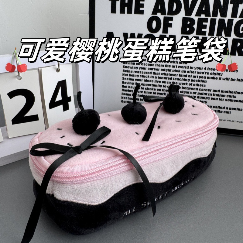 귀여운 체리 케이크 연필 가방 작은 빨간 책 같은 스타일 소녀의 높은 가치 화장품 가방 학생의 데스크탑 문구 가방스토어 가기