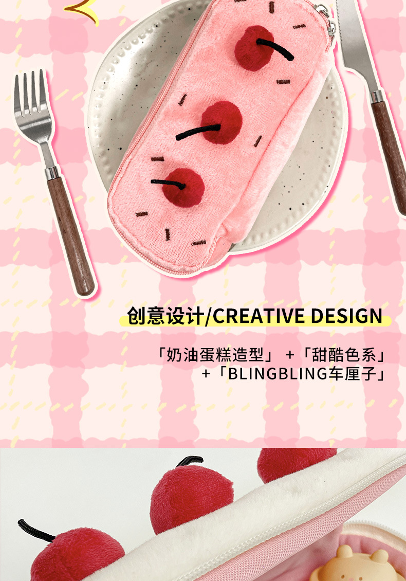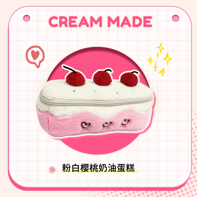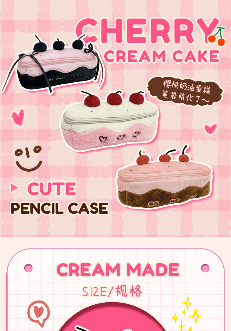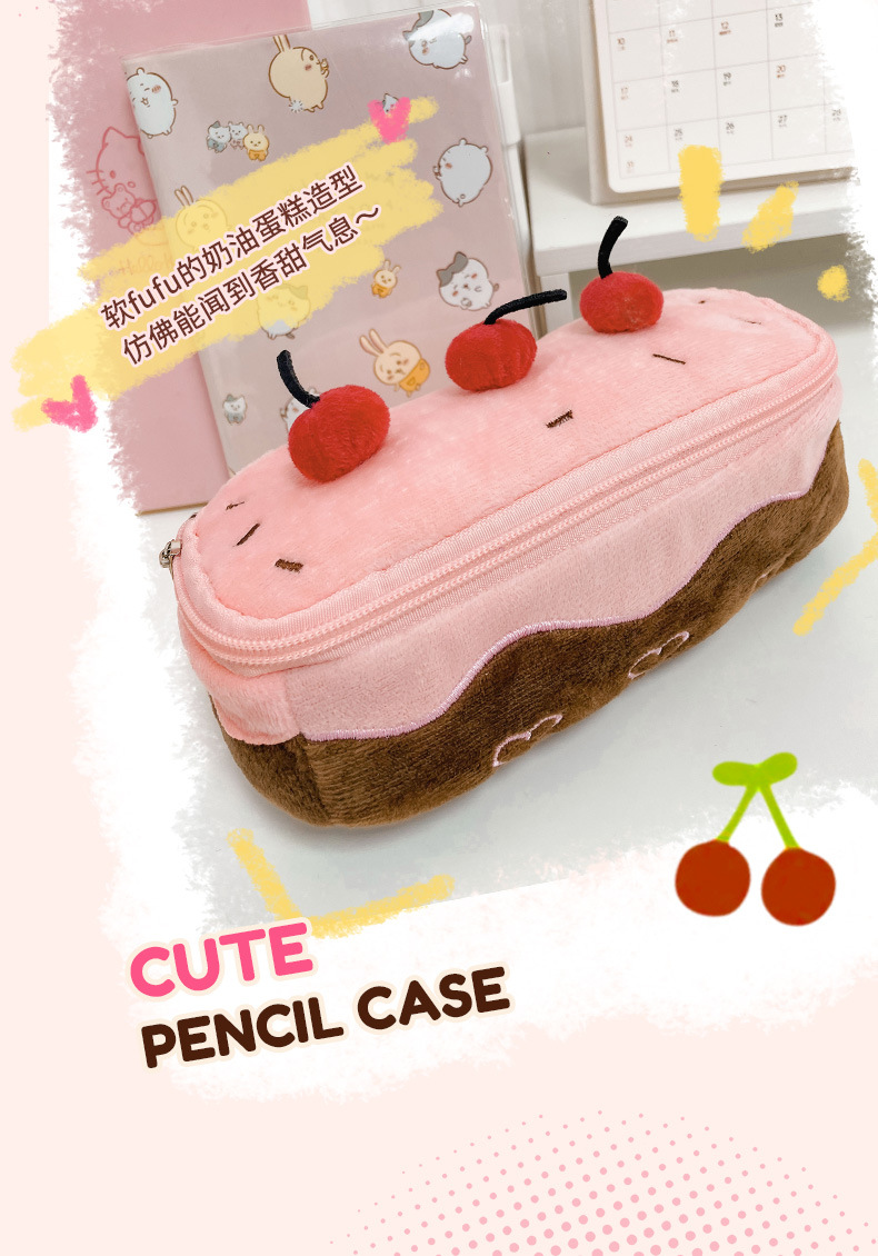 • 핑크 브라운 체리 크림 케이크 펜 케이스