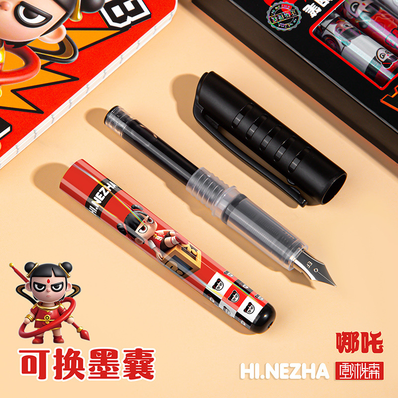 정품 Nezha 직선 액체 만년필 교체 잉크 백 만년필 초등학생을위한 특별 선물 고가 문구 도매