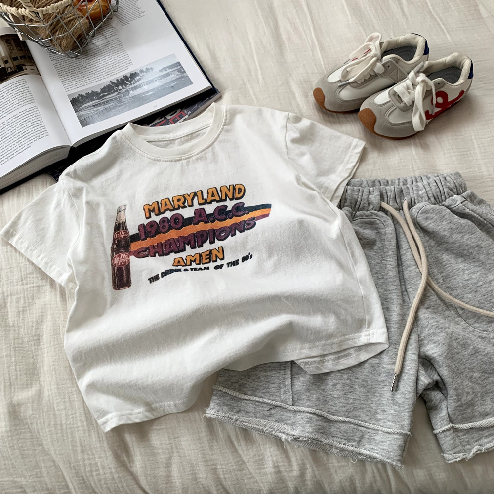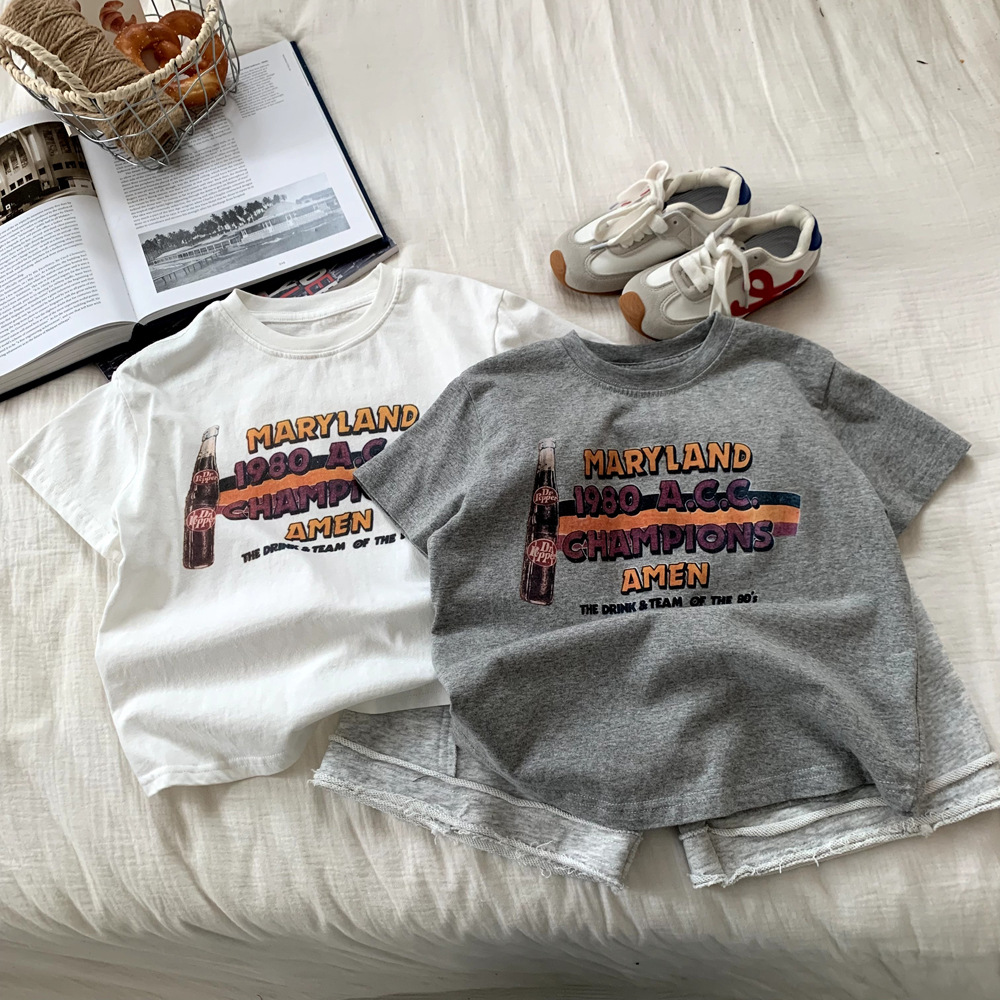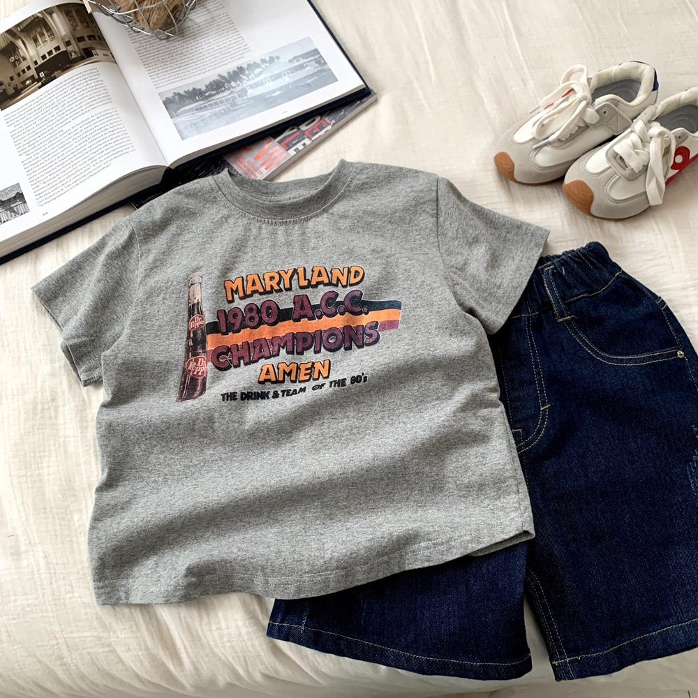 아동복 보이즈 반팔 티셔츠 여름 2025 년 새 도착 올매치 서양식 반소매 보이즈 탑 T스토어 가기