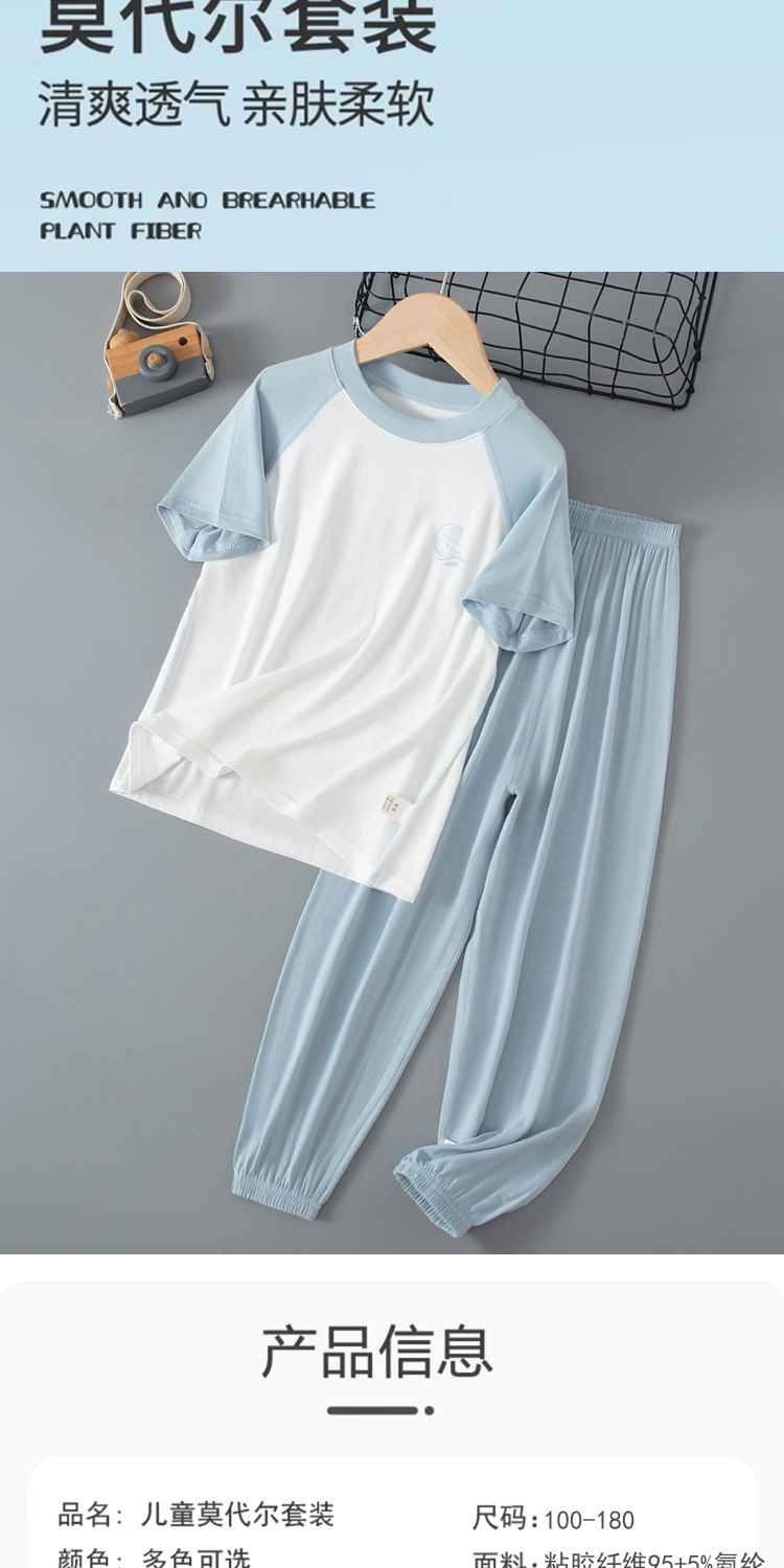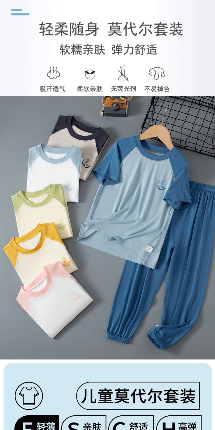 아동복, 잠옷, 남아용 여름 반팔 바지, 가을 옷, 여아용 모달 얇은 속옷 세트