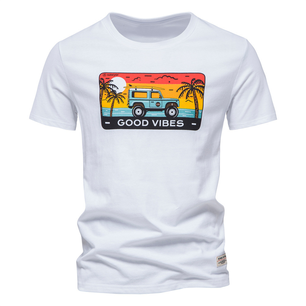 클리어런스 처리 여름 캐주얼 프린트 남성용 반팔 티셔츠 코튼 라운드 넥 패션 스포츠 통기성 코튼 바닥 셔츠