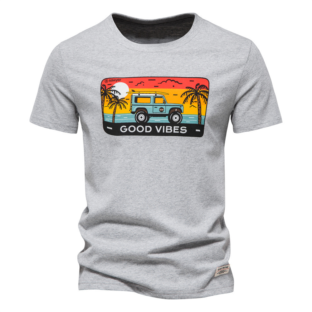 클리어런스 처리 여름 캐주얼 프린트 남성용 반팔 티셔츠 코튼 라운드 넥 패션 스포츠 통기성 코튼 바닥 셔츠스토어 가기