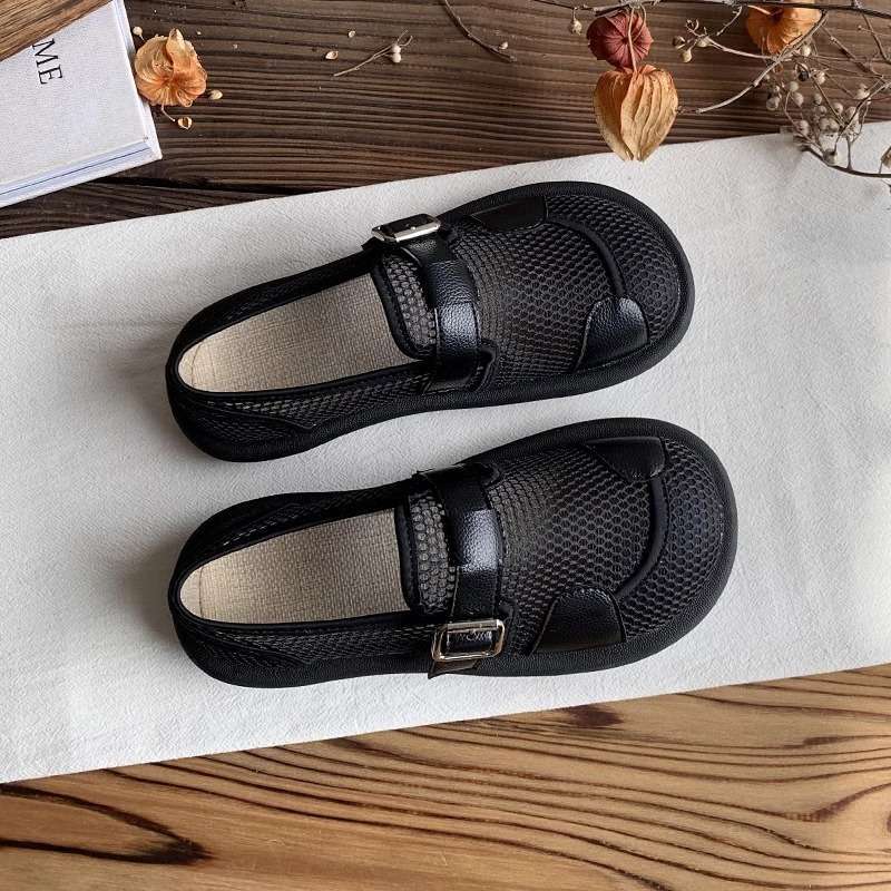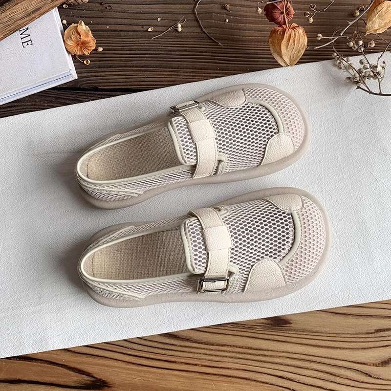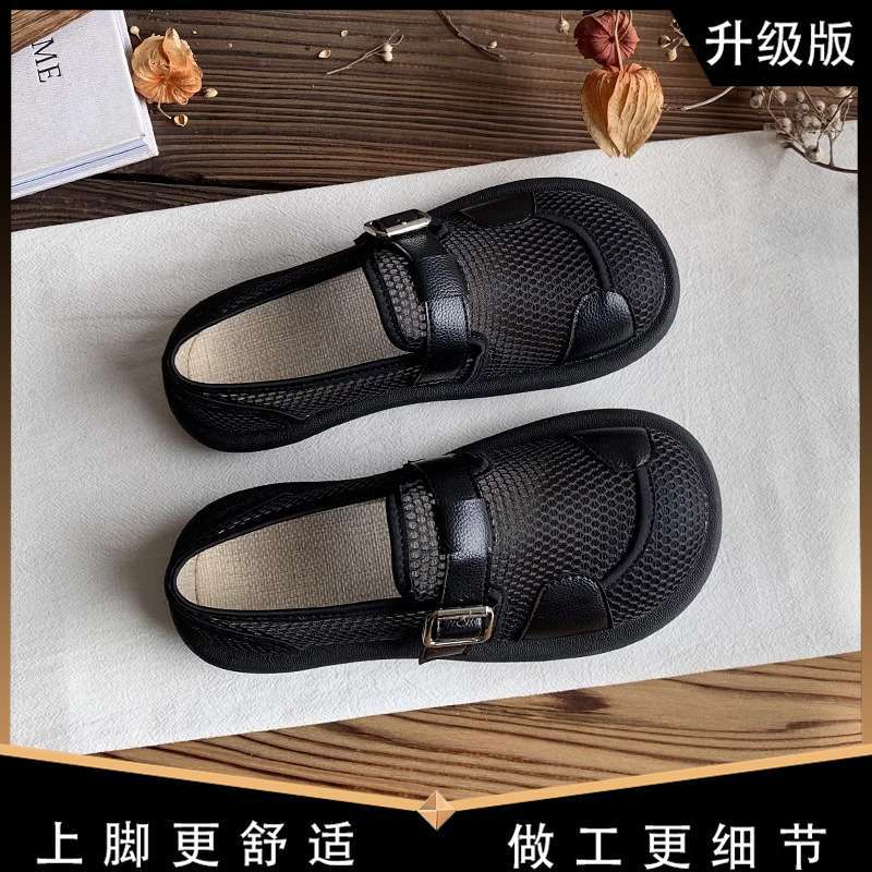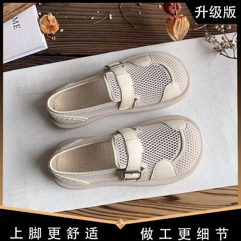 여성을위한 숲 스타일 메쉬 샌들 여름 리넨 신발 2025 새로운 중공 통기성 코튼과 린넨 메쉬 신발 부드러운 바닥 나막신스토어 가기