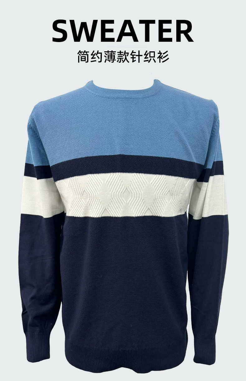 봄과 가을 남성 컬러 블록 라운드 넥 스웨터 루즈한 얇은 트렌디한 다용도 바닥 셔츠는 사용자 정의를 지원합니다스토어 가기