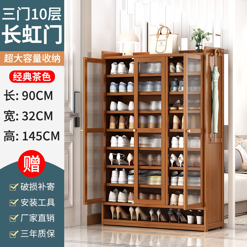 • 창홍문 - 갈색, 문 3개, 10층 [깊이 32CM, 대형 신발 수납 가능]