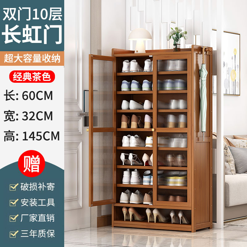 • 창홍문 - 브라운 • 양문 10층 [32CM 깊이, 대형 신발 수납 가능]