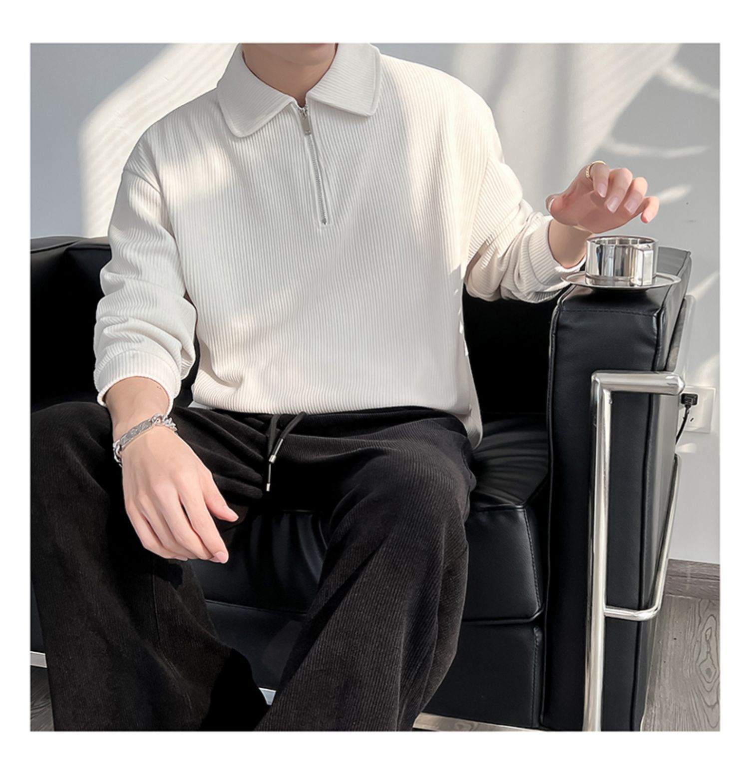 2023 봄과 가을 새 옷깃 지퍼 긴팔 폴로 셔츠 트렌디 남성 캐주얼 패션 Ins 봄과 가을 플랑크톤 핸섬 탑 트렌디스토어 가기