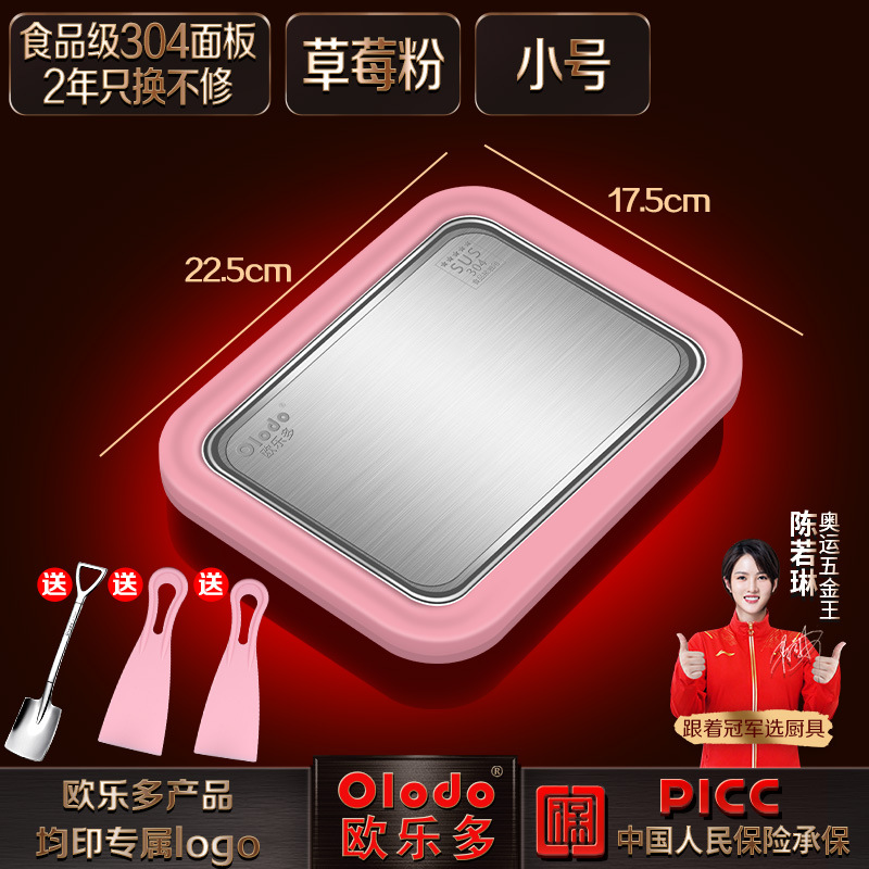 • 식품 등급 304 강철 패널 [소형/애플 그린] 프리 2 프라이팬 + 얼음 주걱