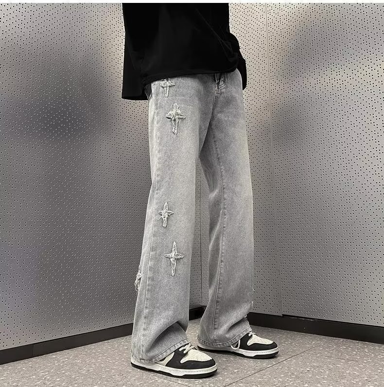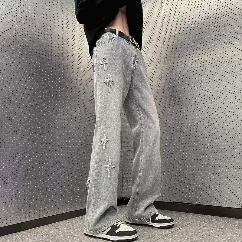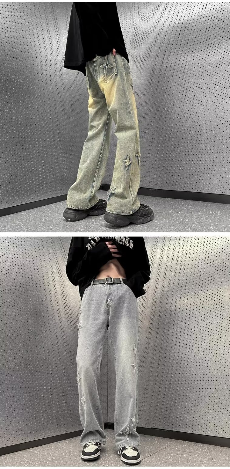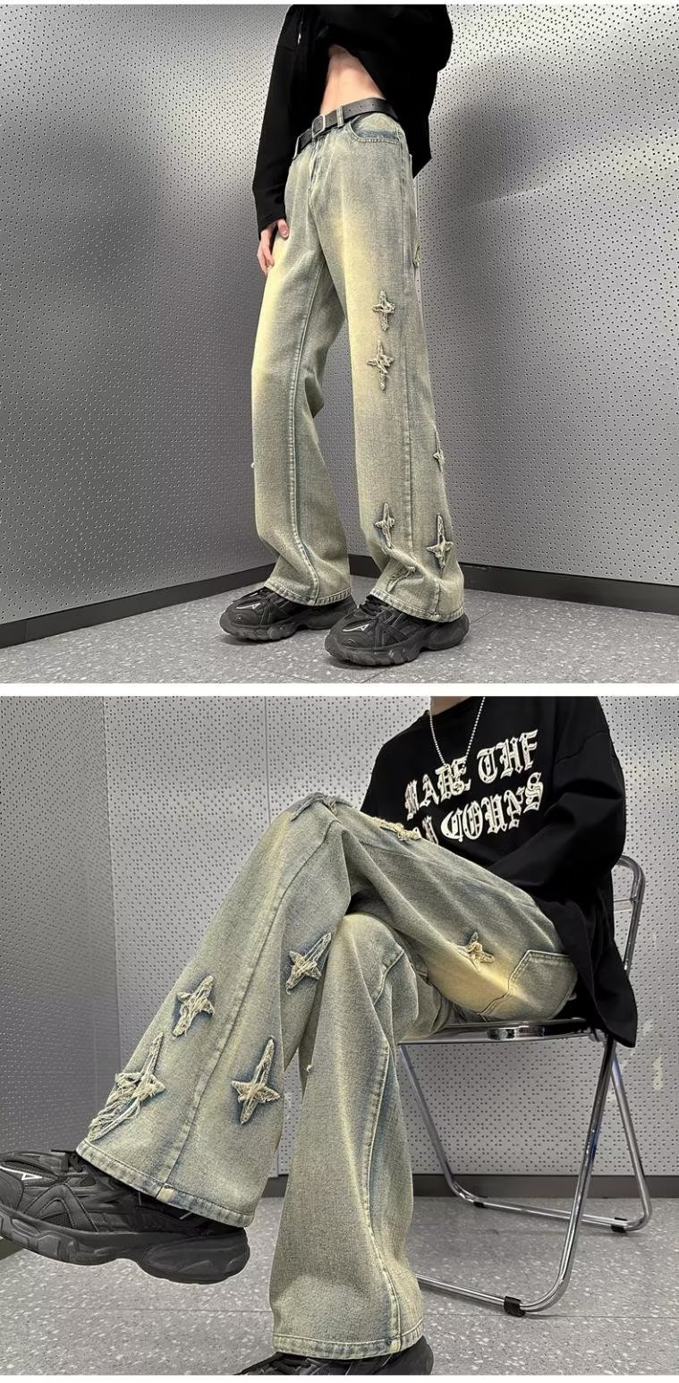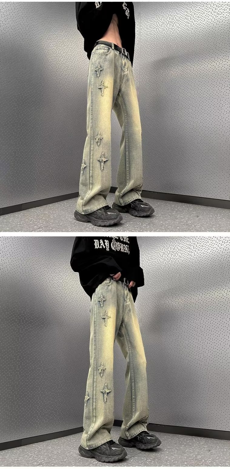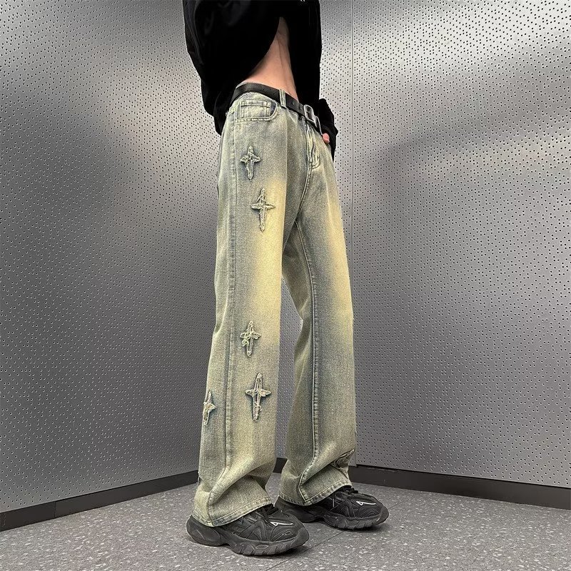옐로우 머드 청바지 남성용 스트레이트 오버 사이즈 남성용 바지 여름 트렌디 브랜드 더피 핸섬 트럼펫 와이드 레그 팬츠스토어 가기