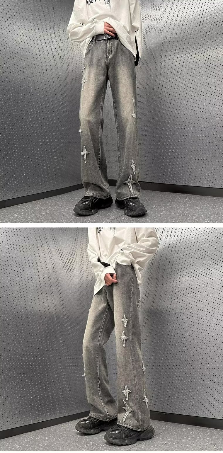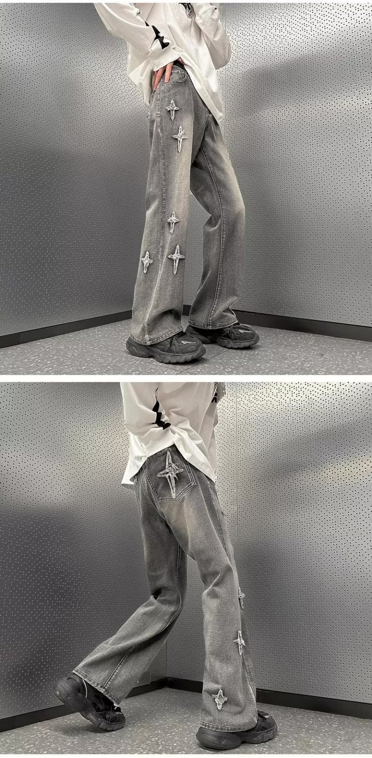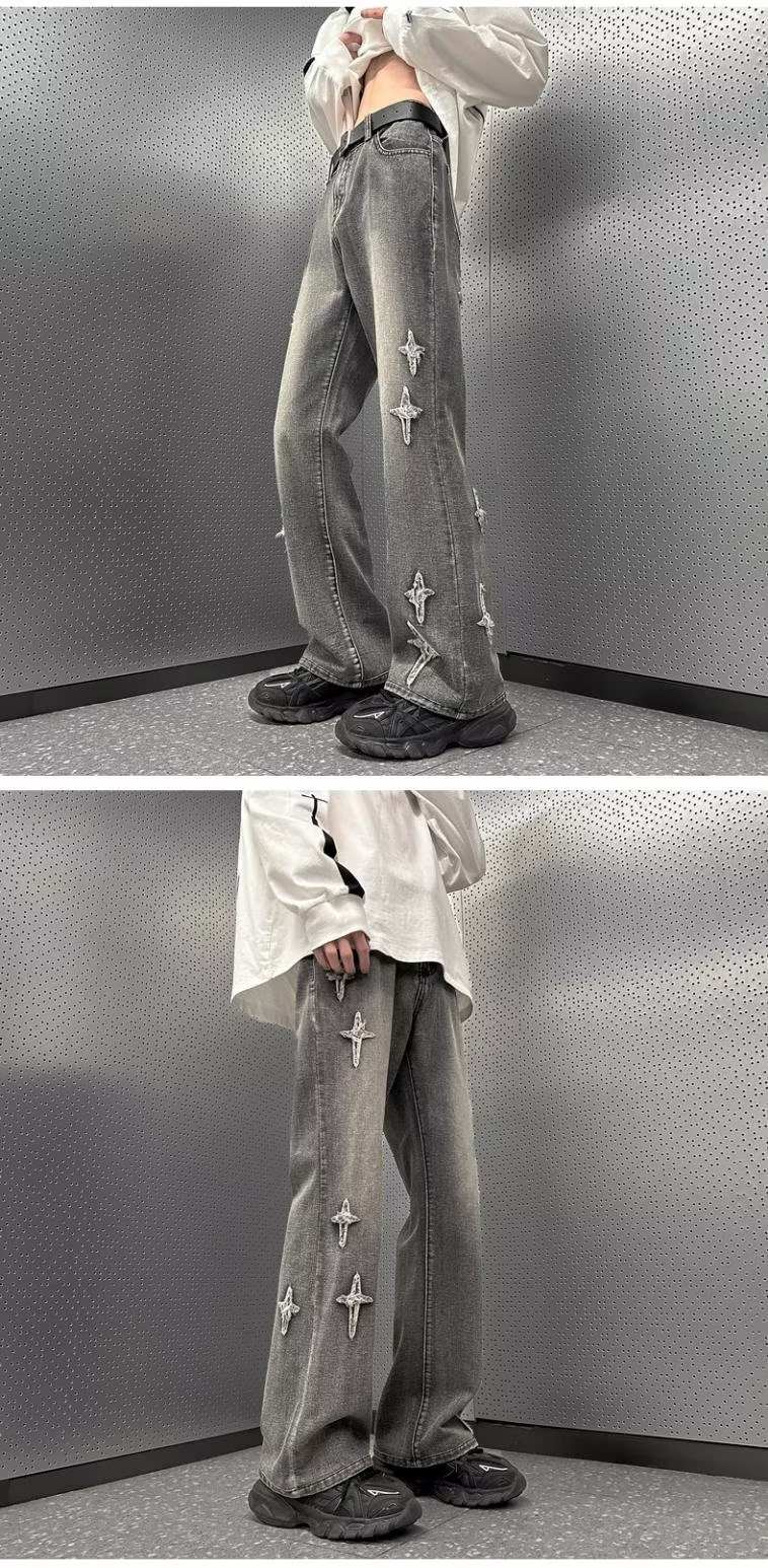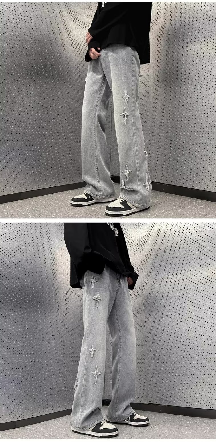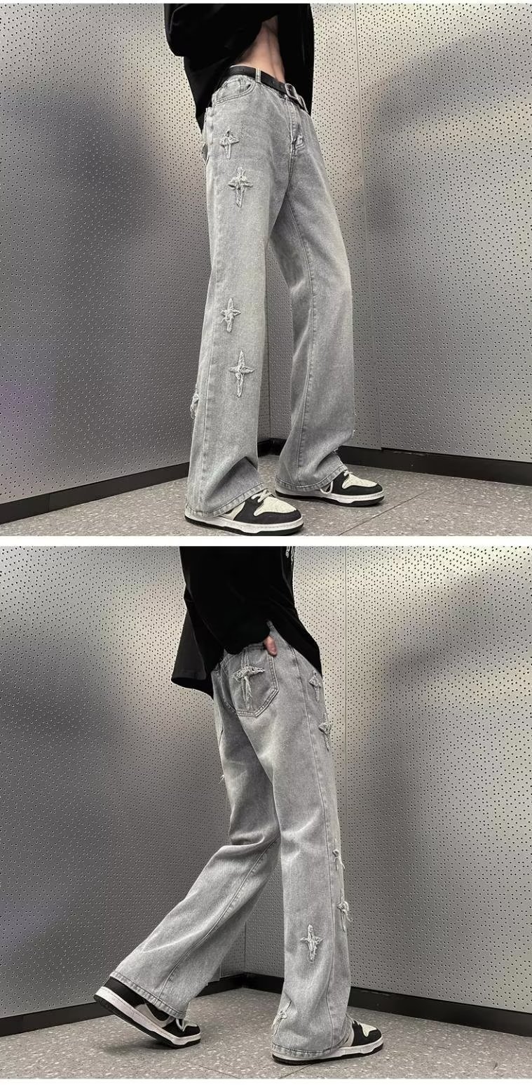 옐로우 머드 청바지 남성용 스트레이트 오버 사이즈 남성용 바지 여름 트렌디 브랜드 더피 핸섬 트럼펫 와이드 레그 팬츠스토어 가기