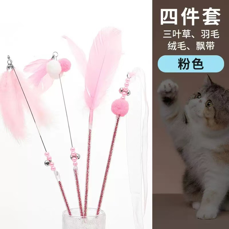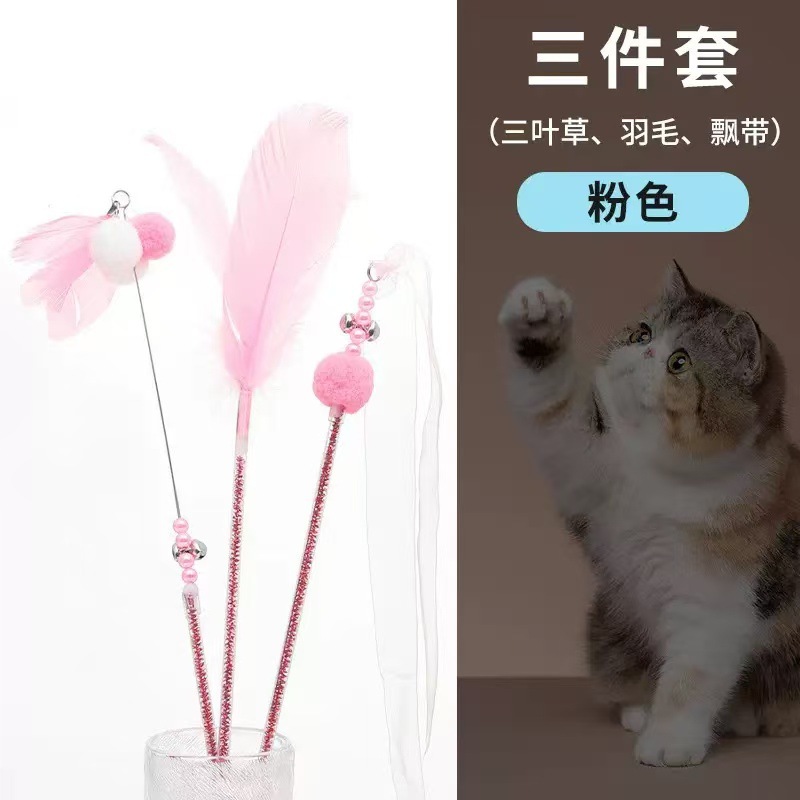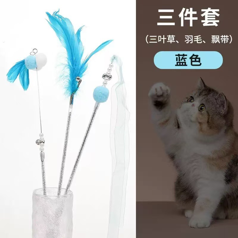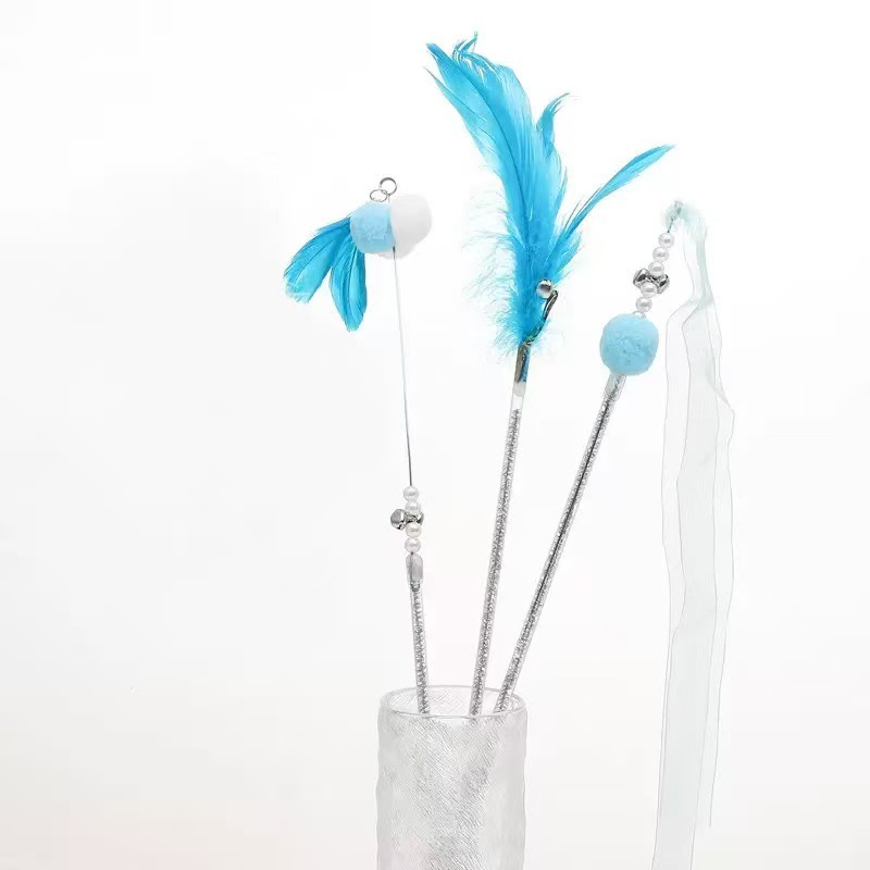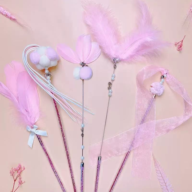페어리 폴 고양이 놀리는 막대, 물림 방지 고양이 장난감, 자기 자극 벨 깃털, 지루함 해소, 내구성이 뛰어난 놀리는 유물, 도매 및 배송 준비 완료