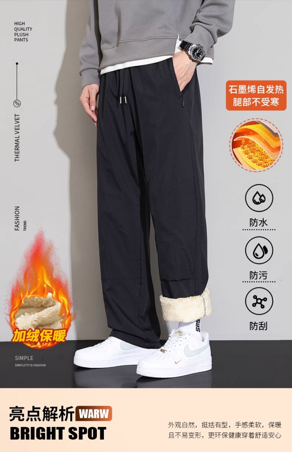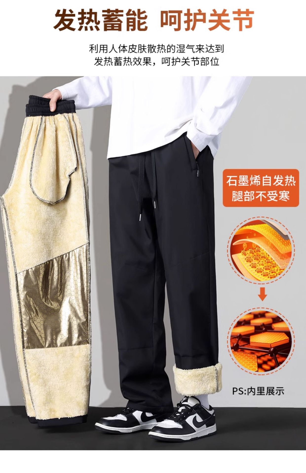 NASA Graphene 기모 방수 충전 바지 남성용 겨울 방풍 바지 캐주얼 양고기 양털 스트레이트 트렌디 브랜드스토어 가기