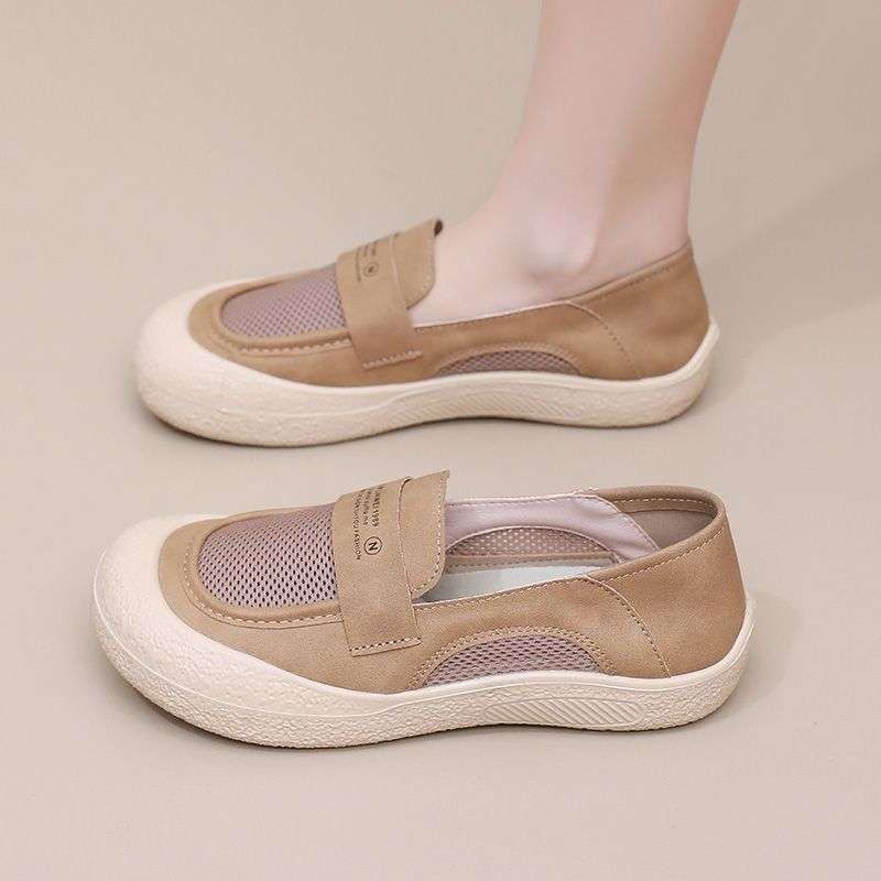 둥근 발가락 통기성 메쉬 여성 신발 2025 여름 새로운 복고풍 부드러운 바닥 어머니 신발 슬립 온 패션 캐주얼 샌들스토어 가기
