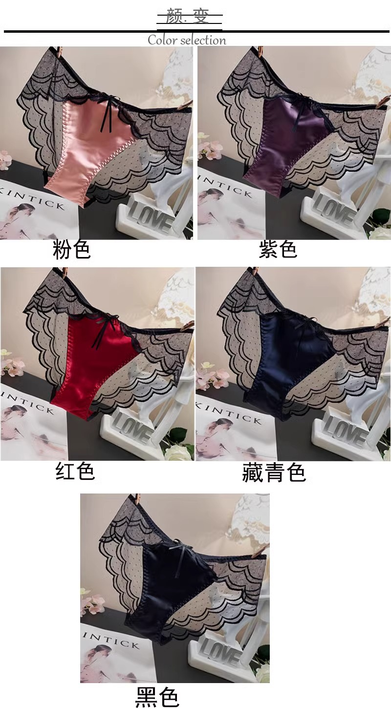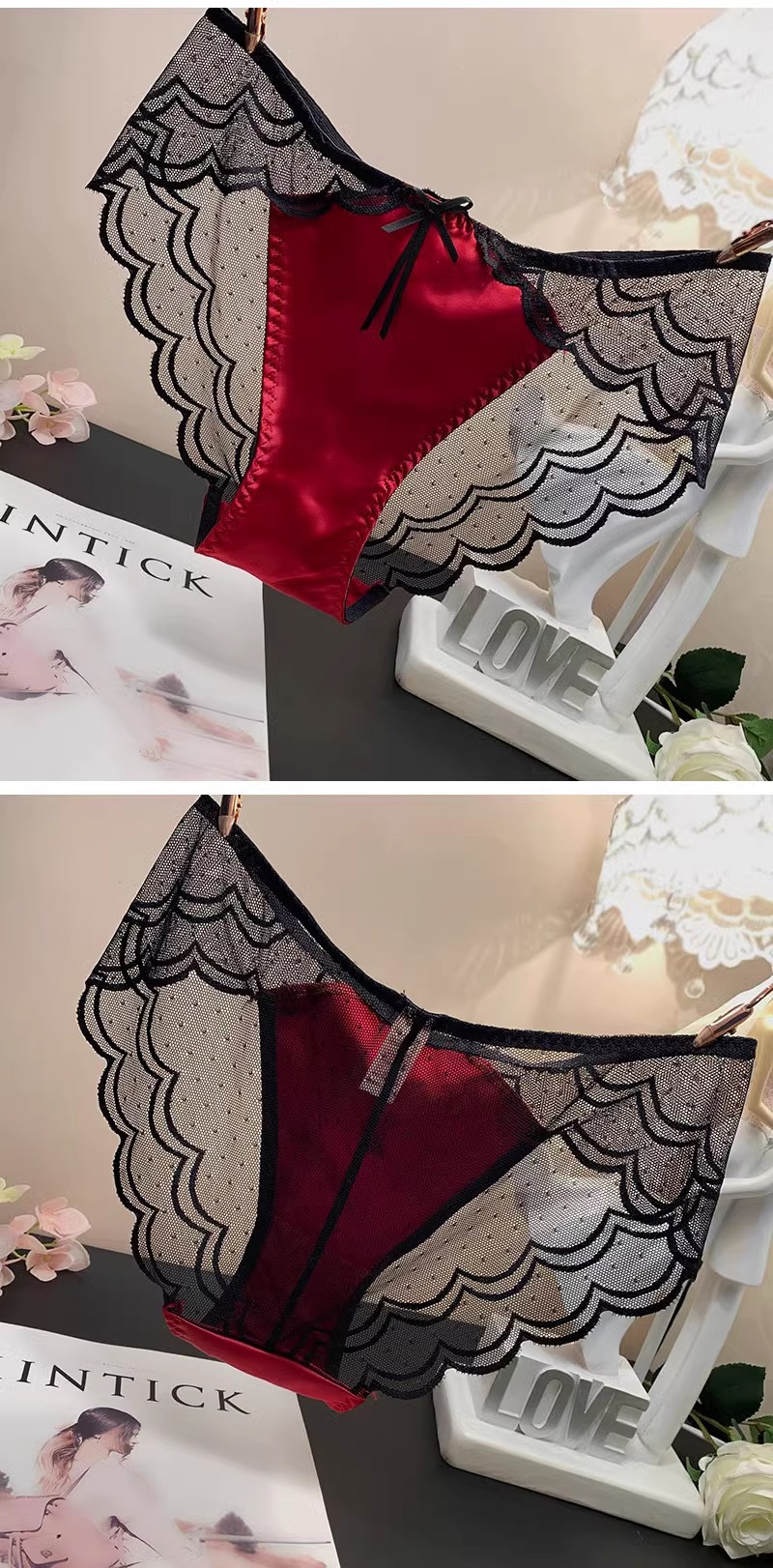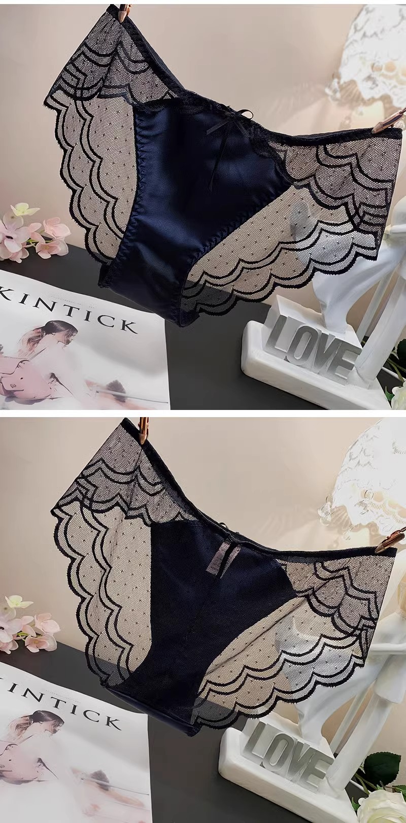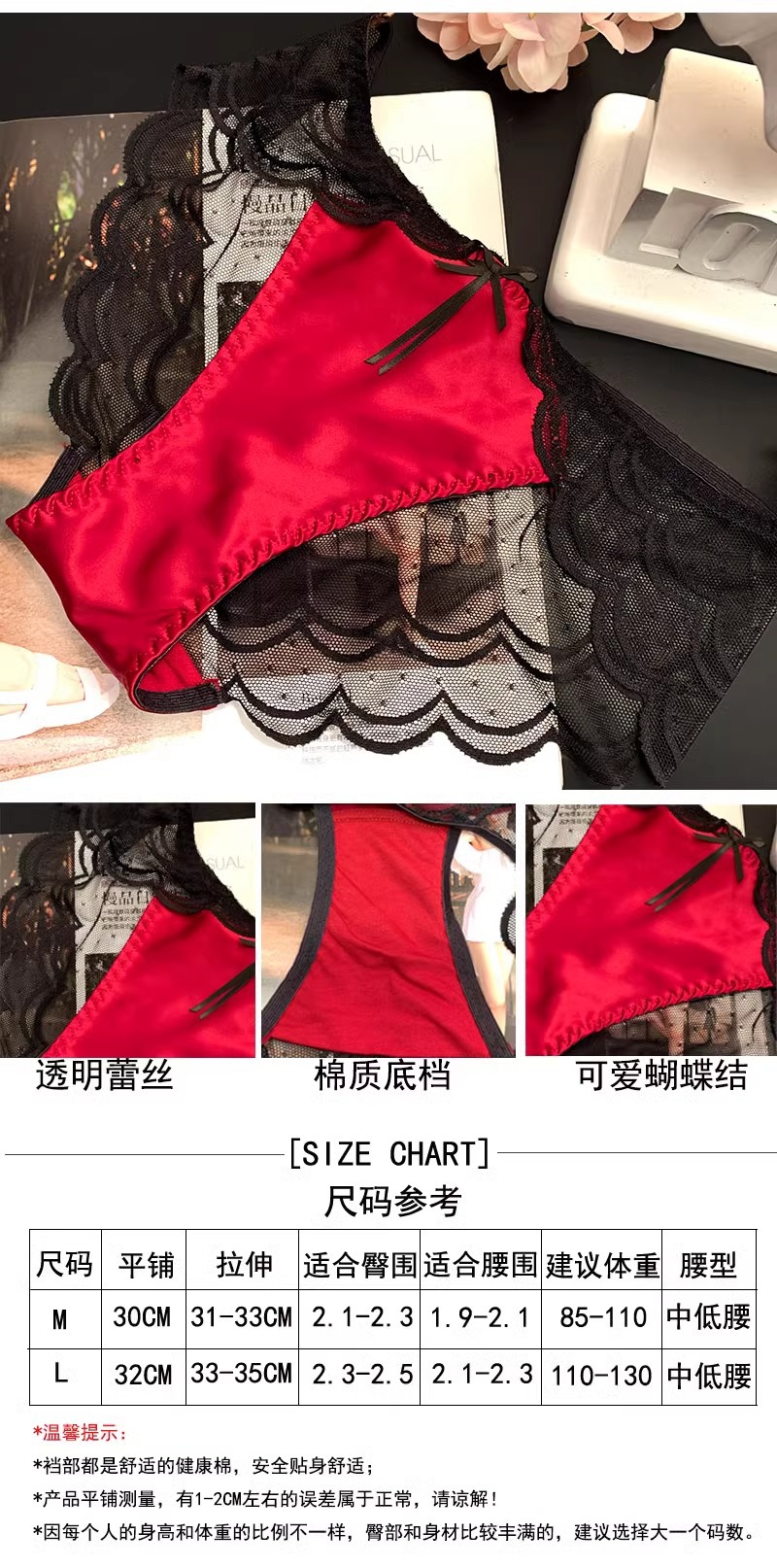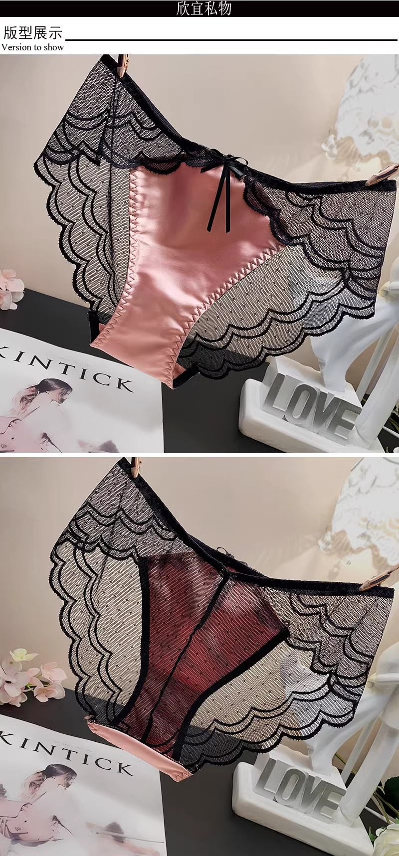 유럽과 미국의 섹시한 투명하고 편안한 레이스 속옷 여성 통기성 유혹 보우 새틴 여성용 팬티 순수 코튼 가랑이스토어 가기