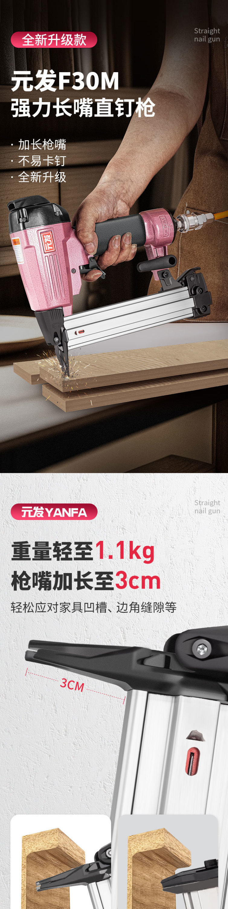 Yuanfa Long Mouth 30 스트레이트 네일 건 새로운 F30 에어 네일 건 장식용 네일 건 목공 네일 건