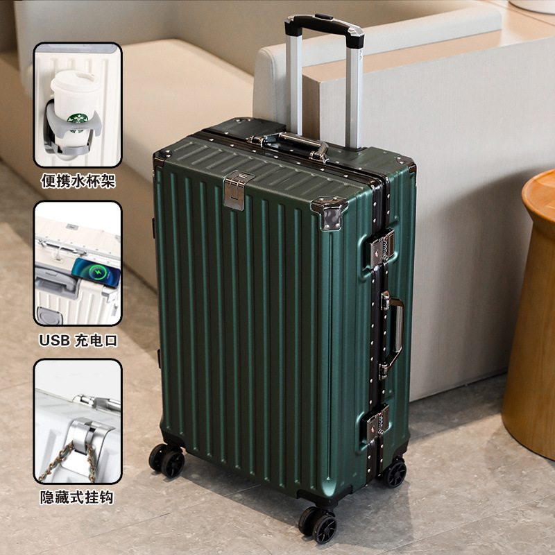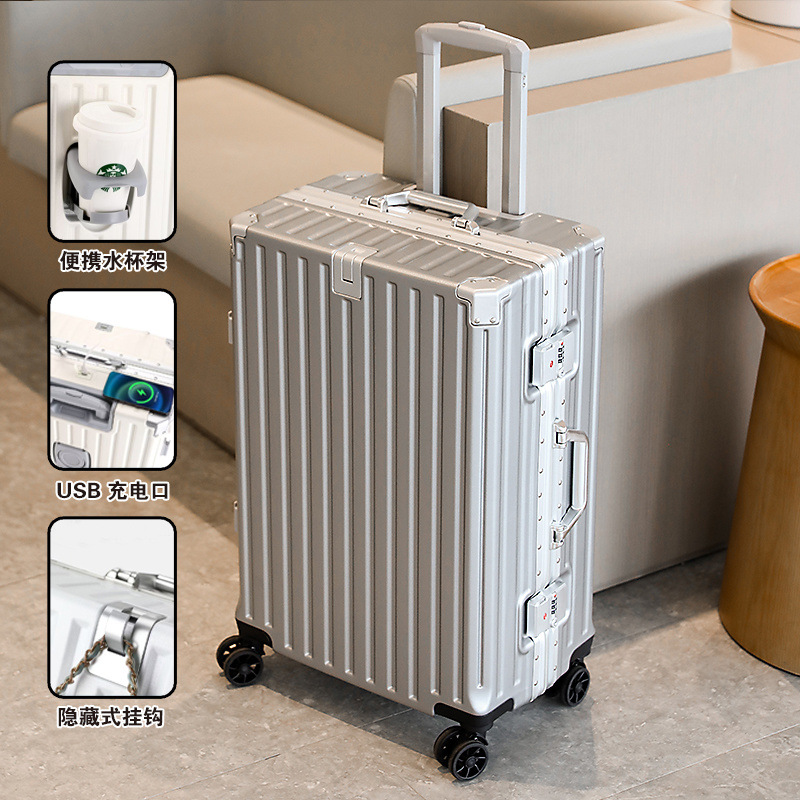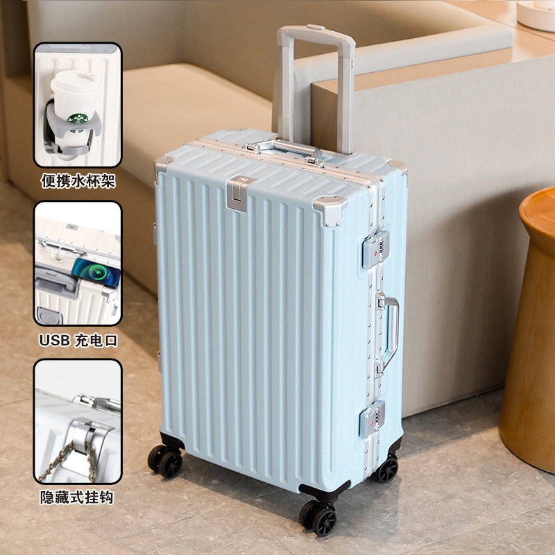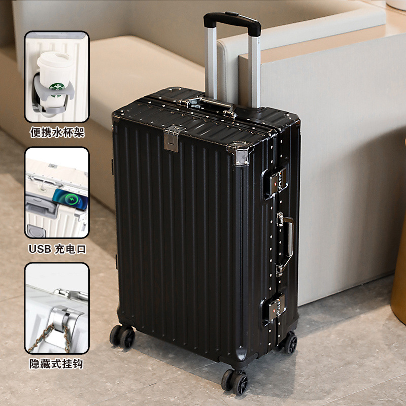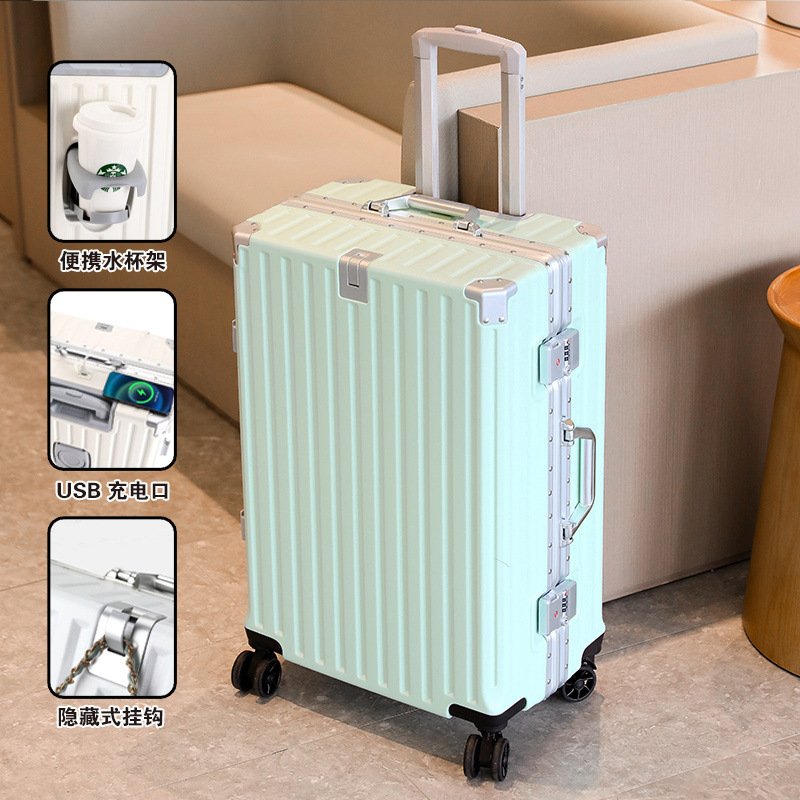 다기능 가방 컵 홀더 충전 포트 트롤리 케이스 알루미늄 프레임 학생 가방 대용량 범용 휠 가방