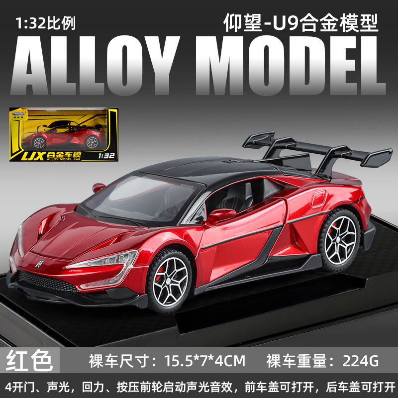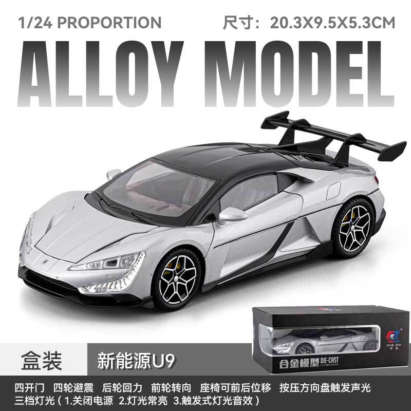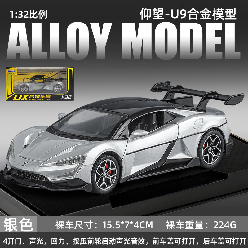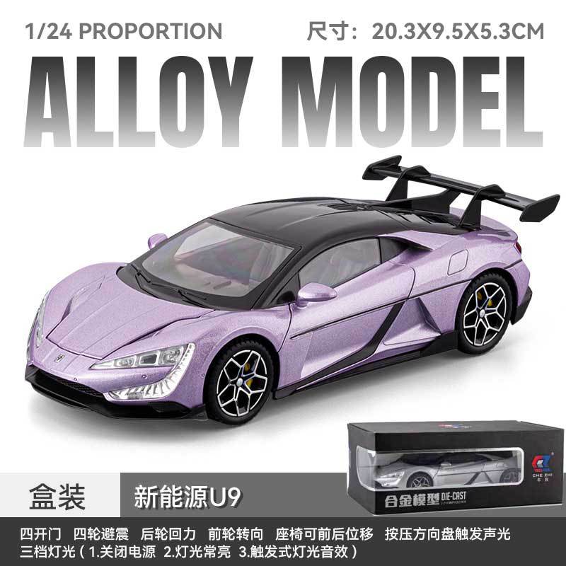 1:32/24 비야디 야옹웨우(U9) 합금 사운드&라이트 후진식 6도어 시뮬레이션 자동차 모형 어린이 장난감 자동차