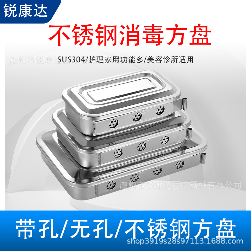 뚜껑이 있는 304 스테인레스 스틸 소독 상자, 구멍이 있는 소독 사각형 접시, 수술 트레이, 클리닉 요오드 방지 기구 상자 도매