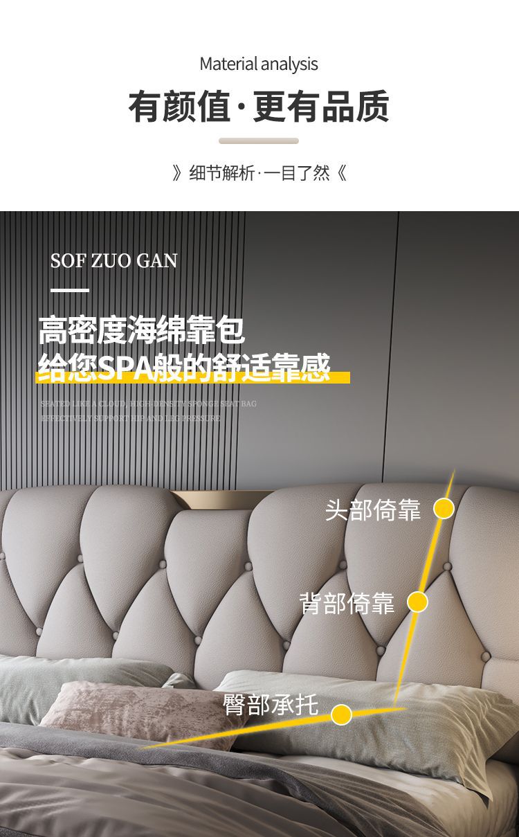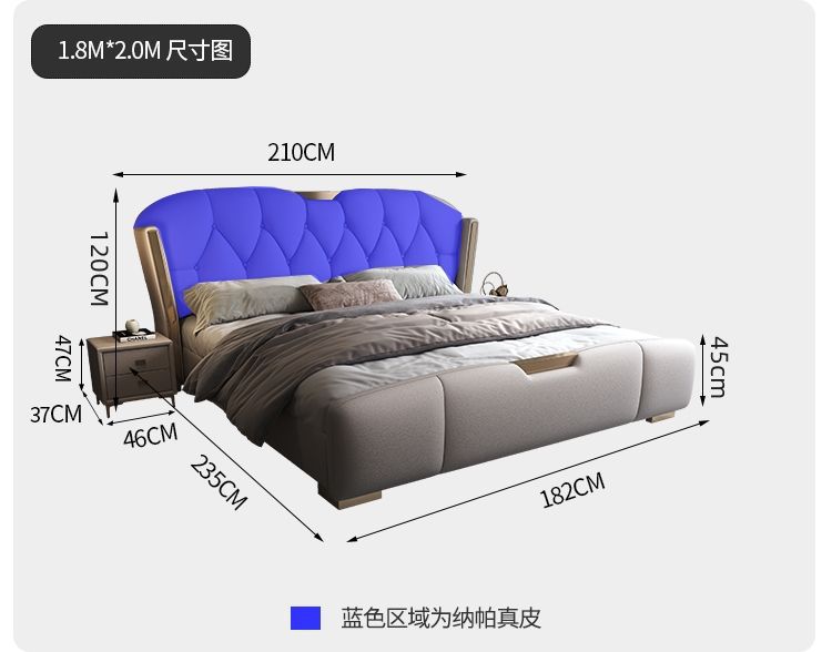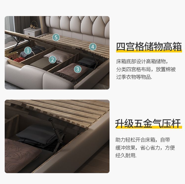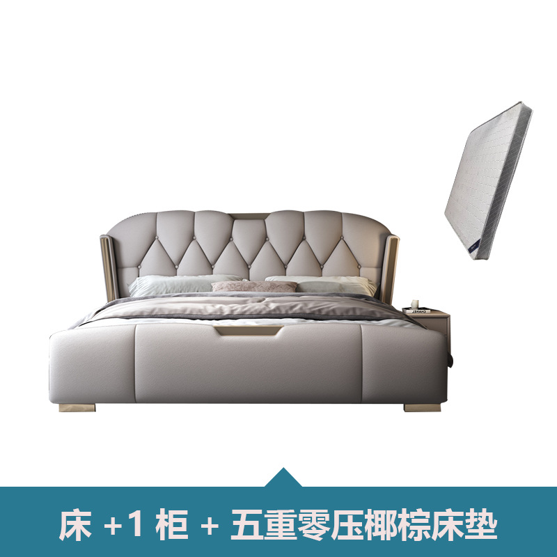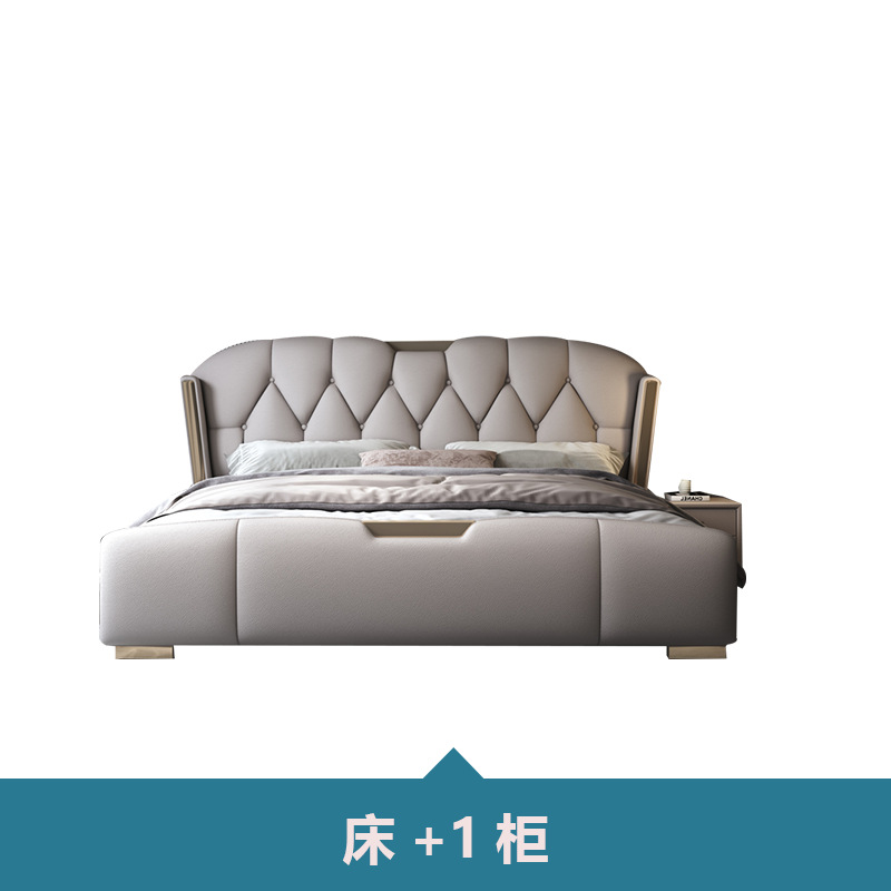 • 고급 가죽 침대 + 수납장 2개 + 피부 친화적인 부드러운 탄성 매트리스