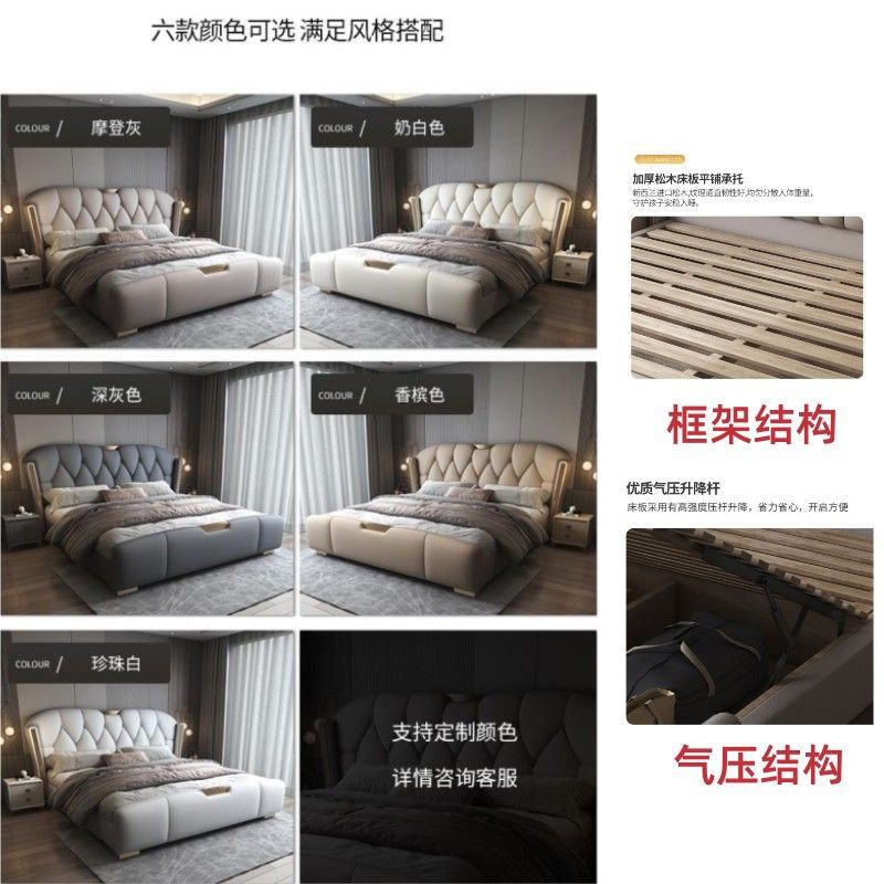 새로운 중국 스타일의 가죽 라이트 럭셔리 현대 미니멀리스트 더블 침대 럭셔리 하이 엔드 소프트 팩 스토리지 침대 침실 럭셔리 빅 침대스토어 가기