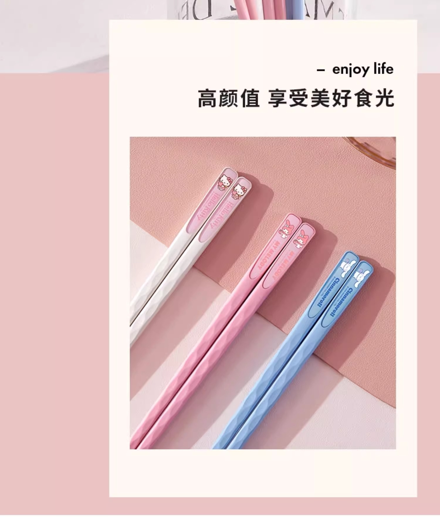산리오 정품 인증 젓가락 식품등급 소재 가족용 1인용 젓가락 1개 고급 미끄럼 방지 젓가락 세트