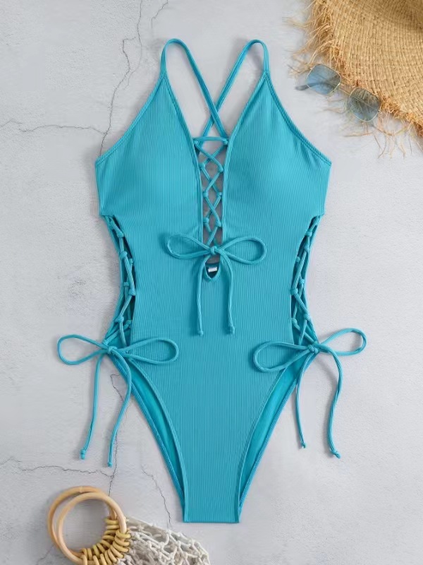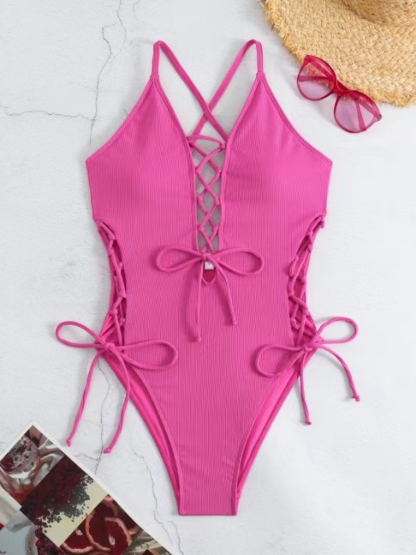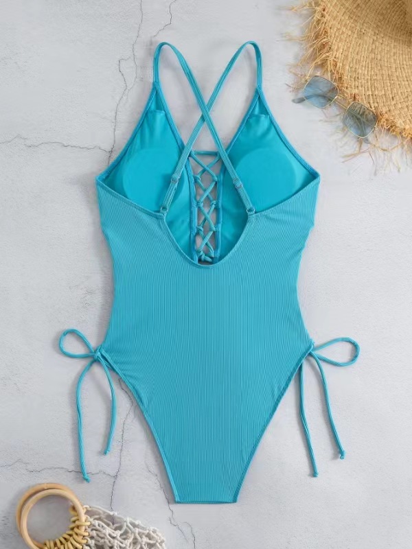 2025 유럽과 미국의 수영복 섹시한 백리스 원피스 수영복 멀티 컬러 크로스 보더 아마존 크로스 스트랩 수영복 비키니