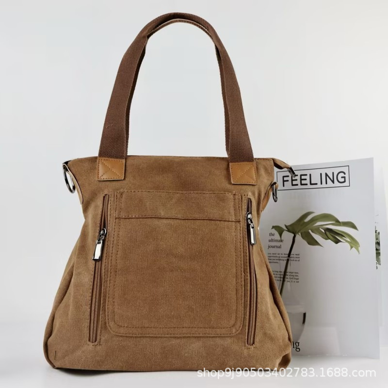 가방 크로스백 캔버스백 지퍼가 달린 핸드백 토트백 대용량 통근 여행 숄더백 복고풍