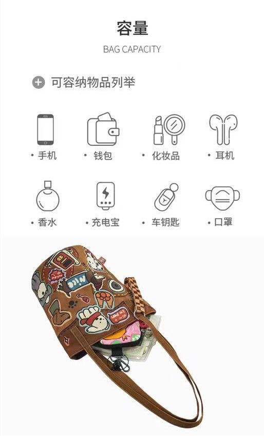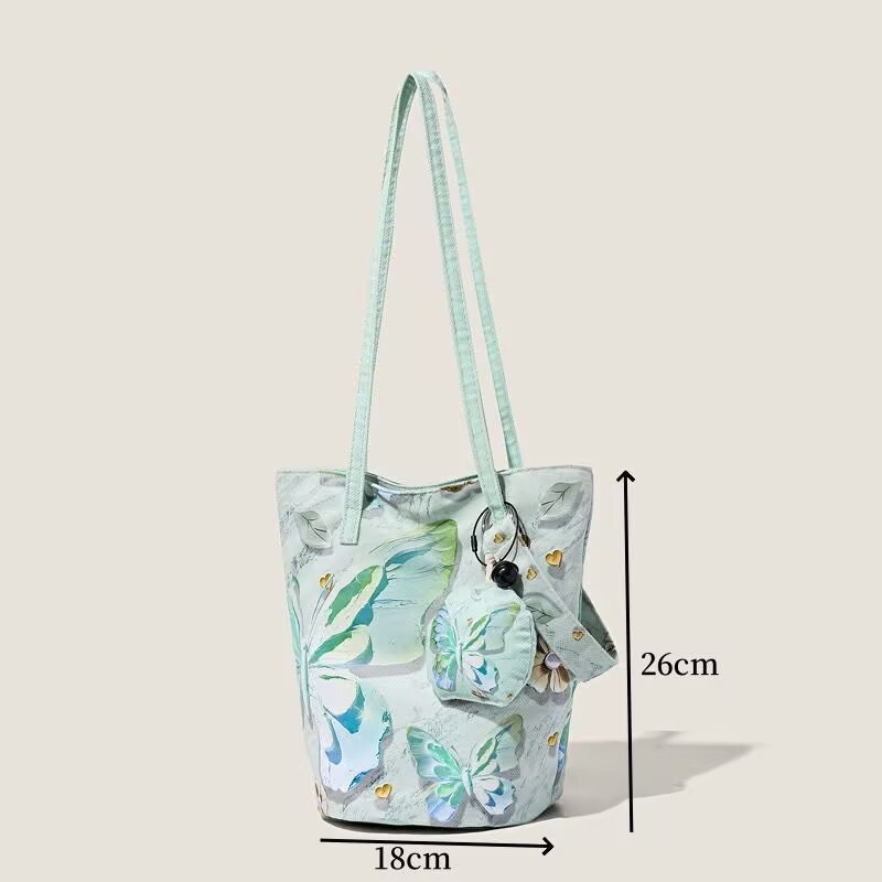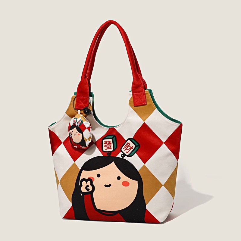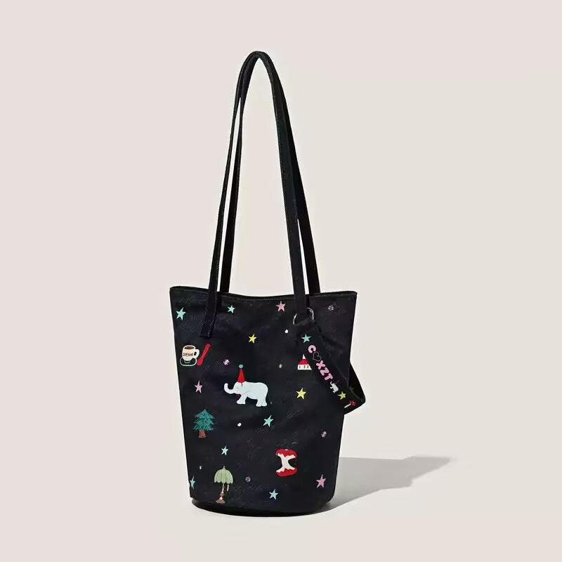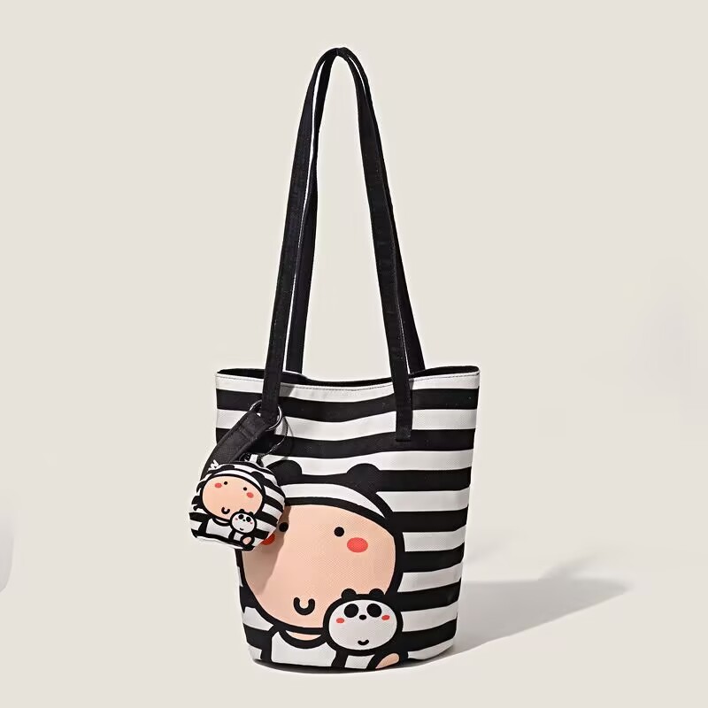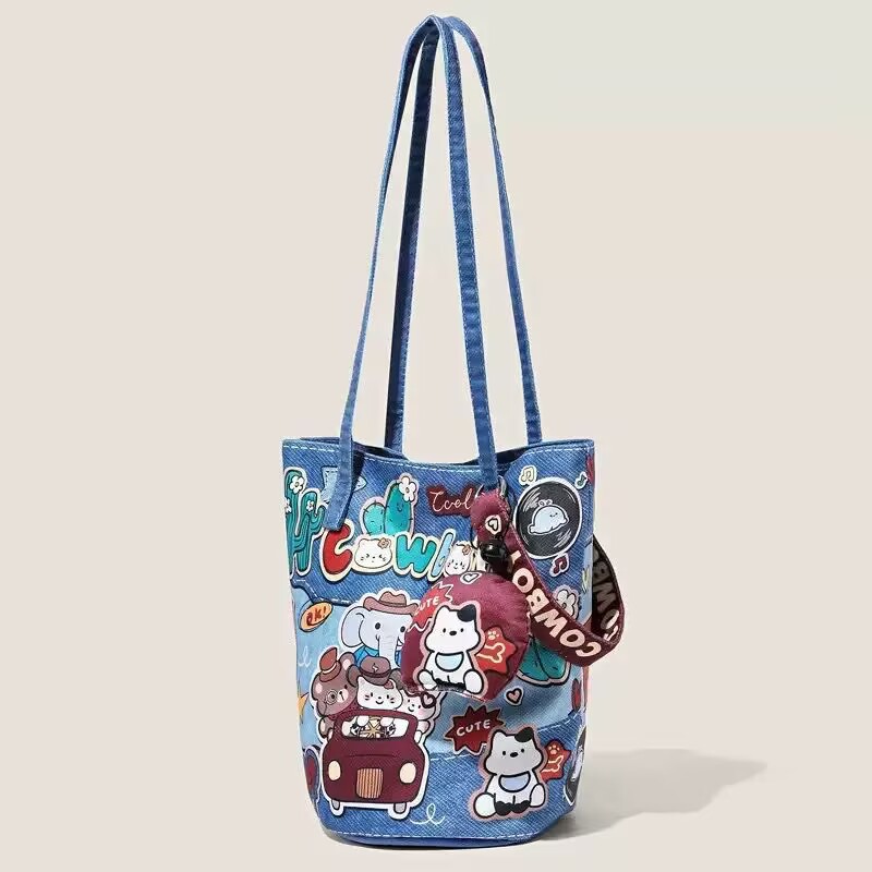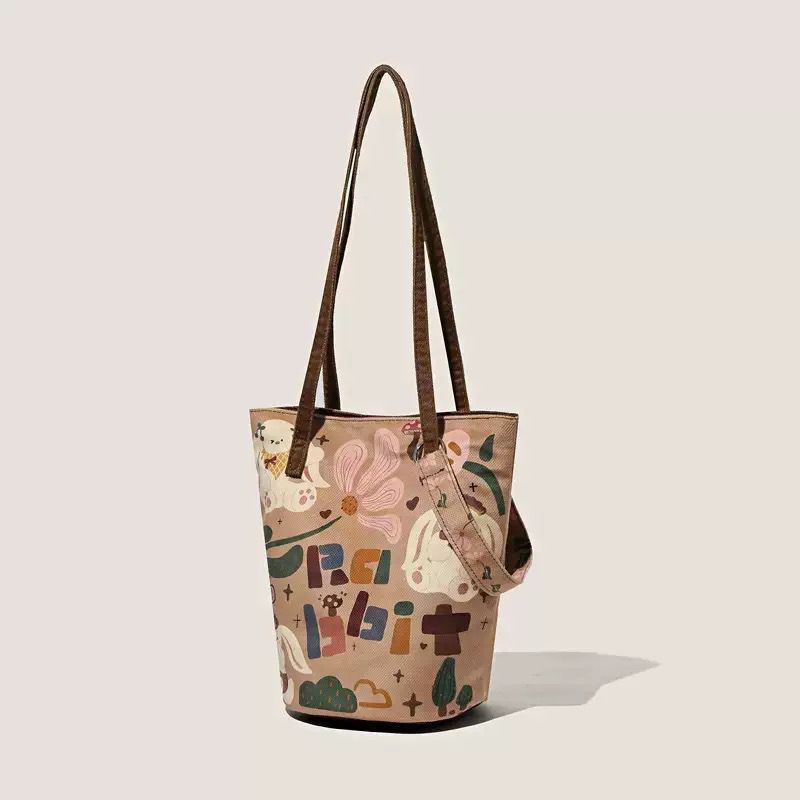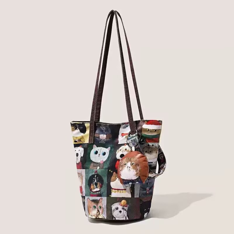 한국어 버전 오리지널 귀여운 강아지 프린트 통근 가방 캐주얼 버킷 백 크로스 바디 캔버스 가방 대학생 통근 가방 여성