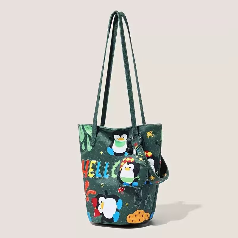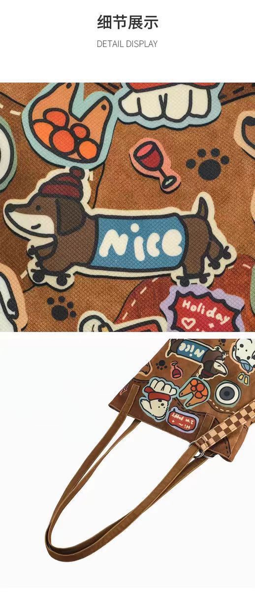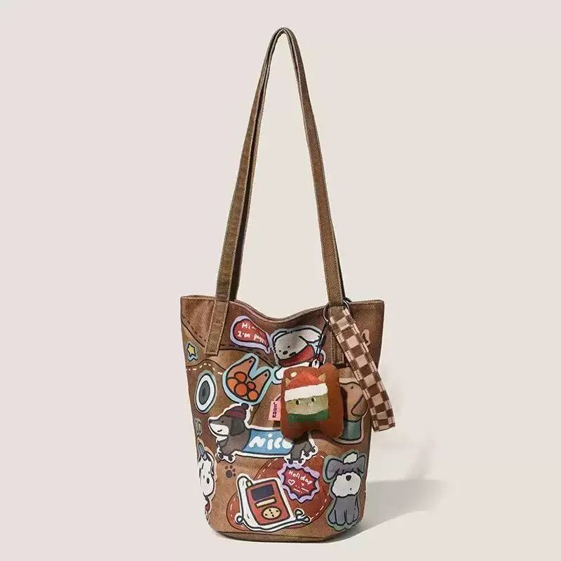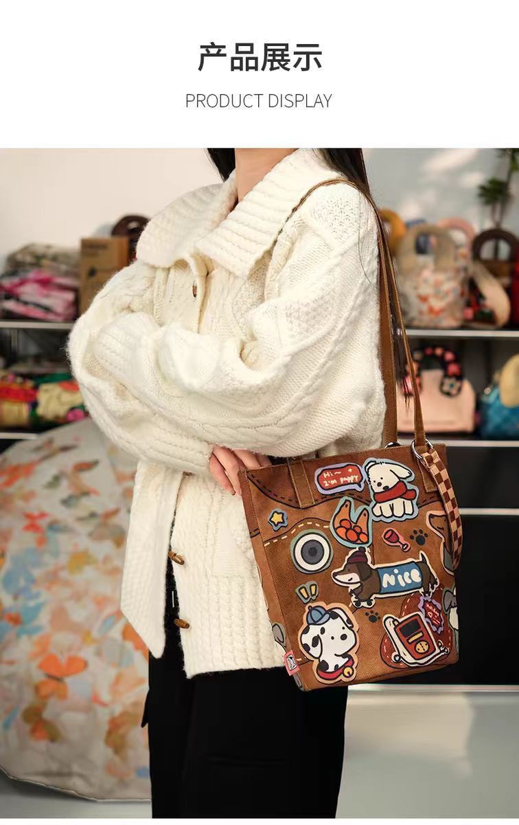 한국어 버전 오리지널 귀여운 강아지 프린트 통근 가방 캐주얼 버킷 백 크로스 바디 캔버스 가방 대학생 통근 가방 여성스토어 가기