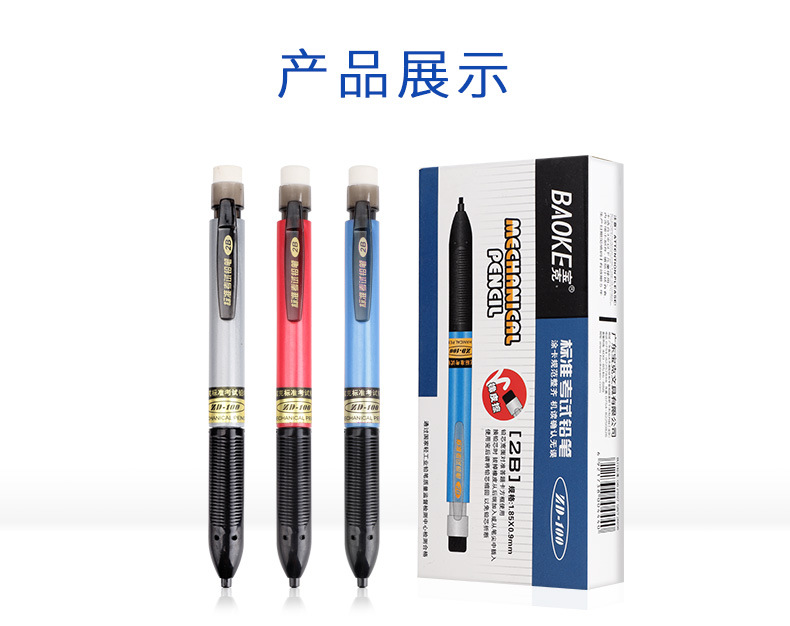Baoke ZD100 카드 코팅 연필 2b 고무가 있는 자동 연필, 대학 입시, 국가 시험 답안 카드 연필